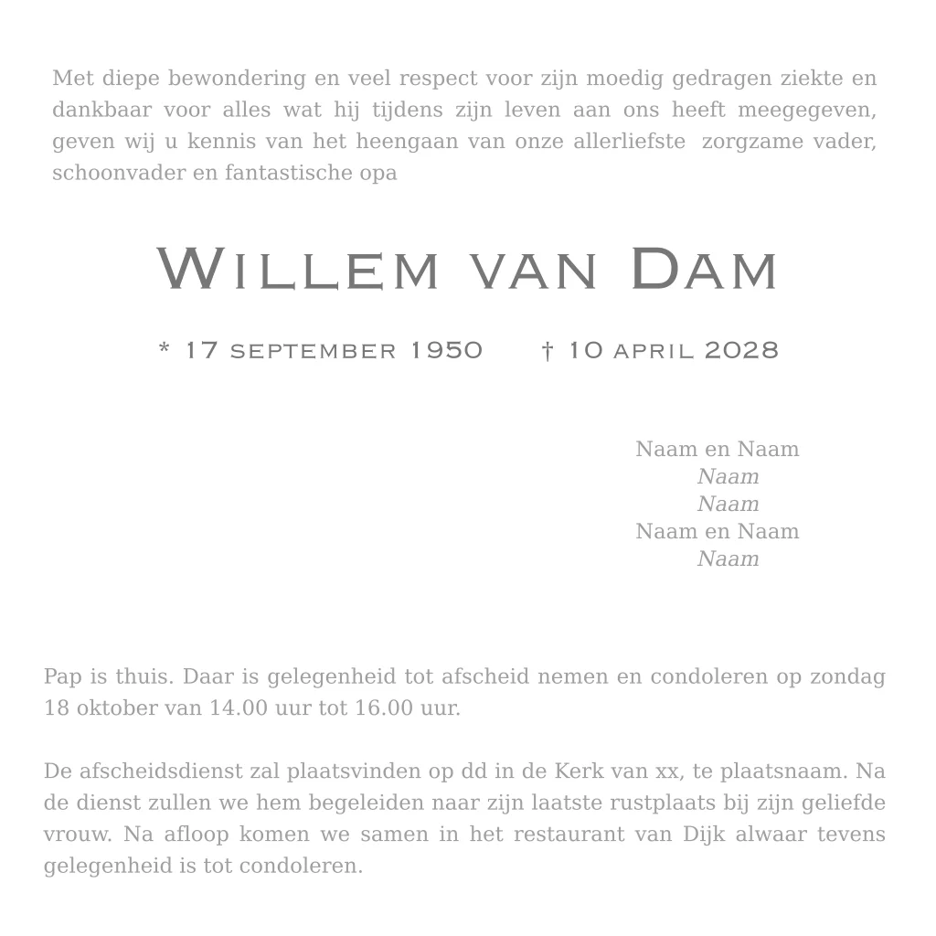 Moderne rouwkaart grijze randen en eigen foto met kaders