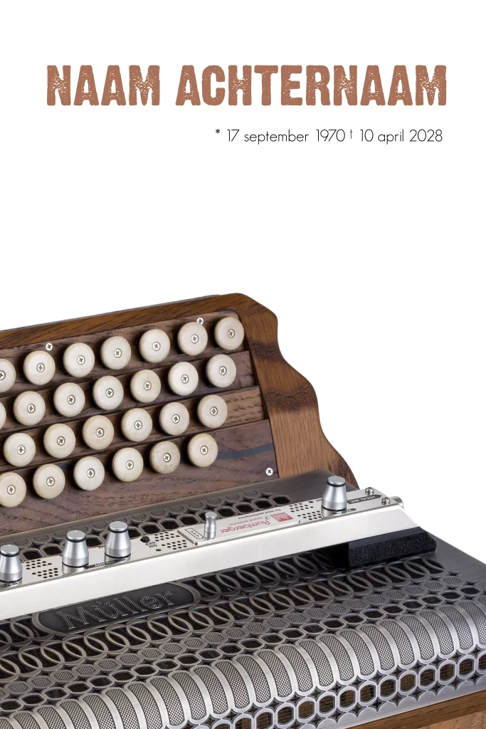 Moderne rouwkaart met de foto van een harmonica / accordeon. De foto is ook te vervangen door een eigen foto (999)