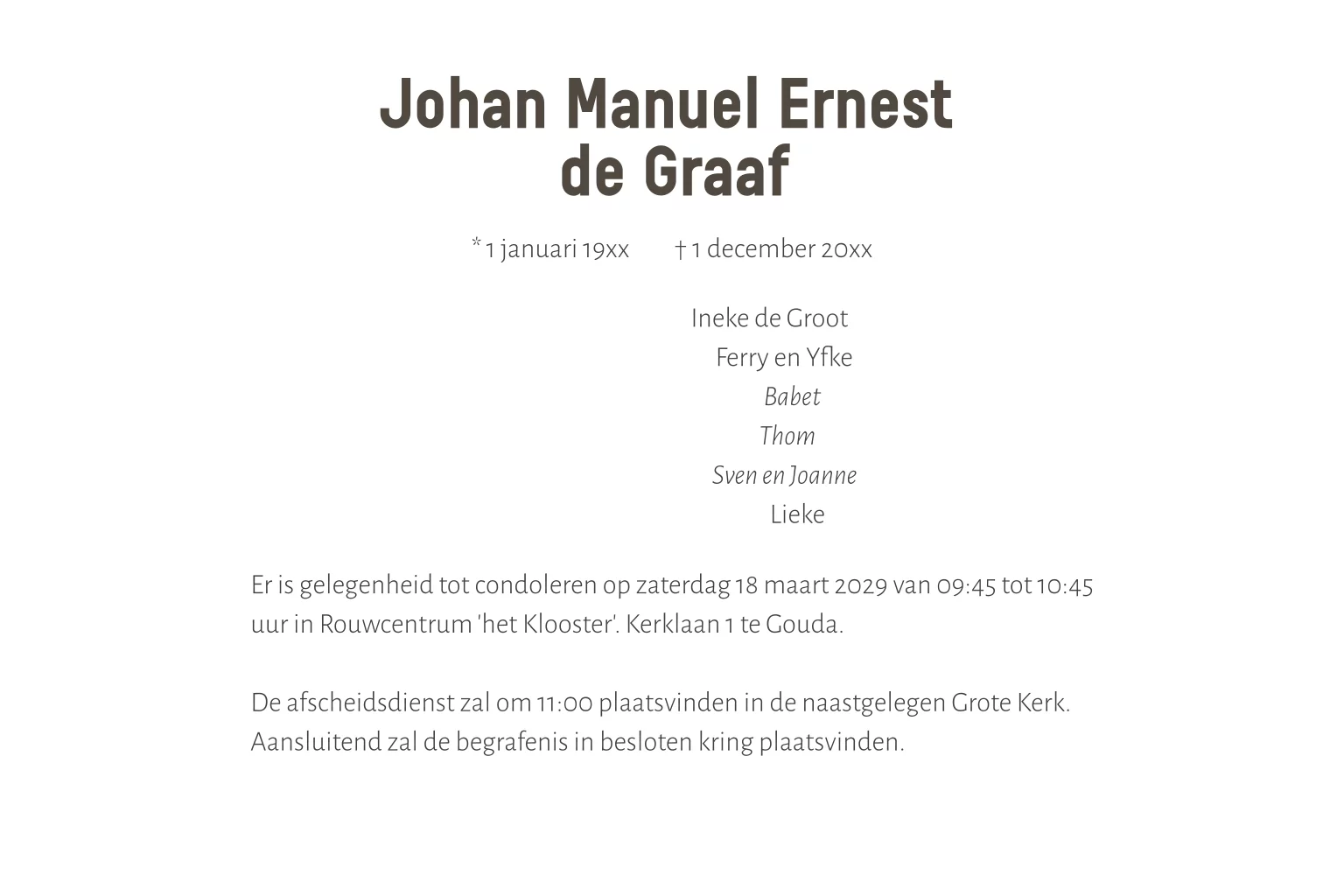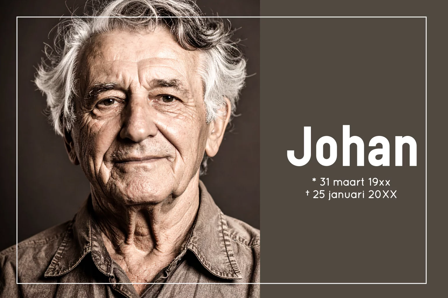 Moderne rouwkaart voor een man met bruine achtergrond. Ruimte voor het plaatsen van een eigen foto. Met rouwkader. (555555)