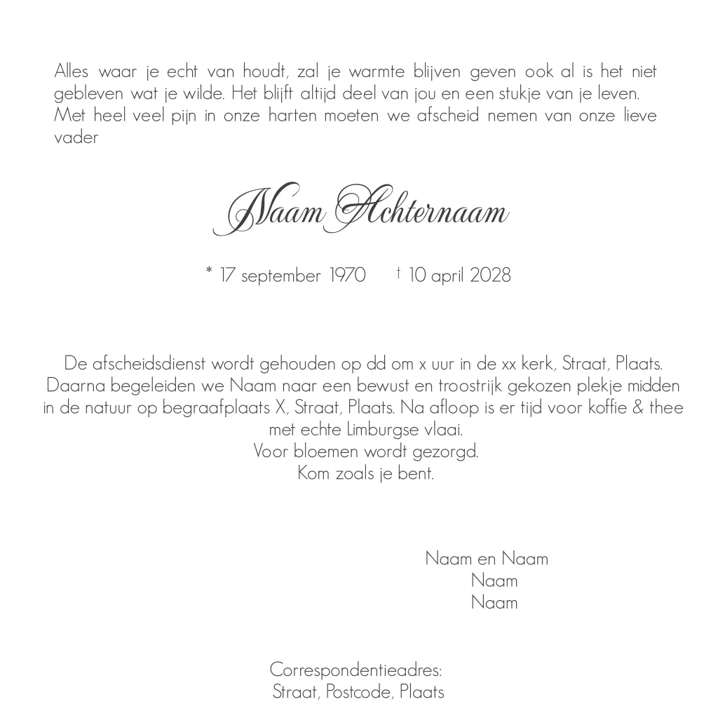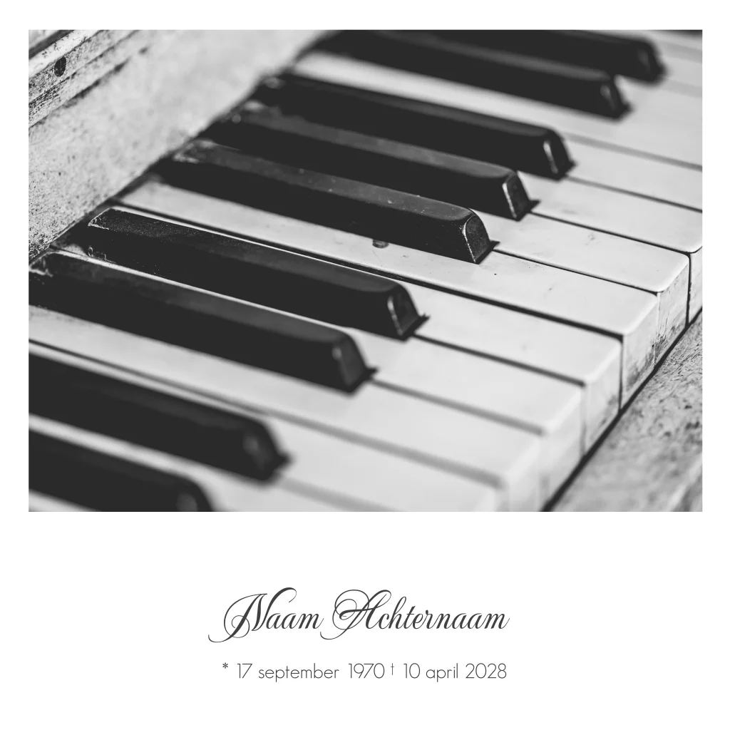 Rouwkaart man of vrouw met foto piano