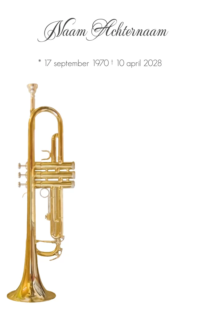 Moderne rouwkaart man of vrouw met foto trompet. De foto is ook te vervangen door een eigen foto (999)
