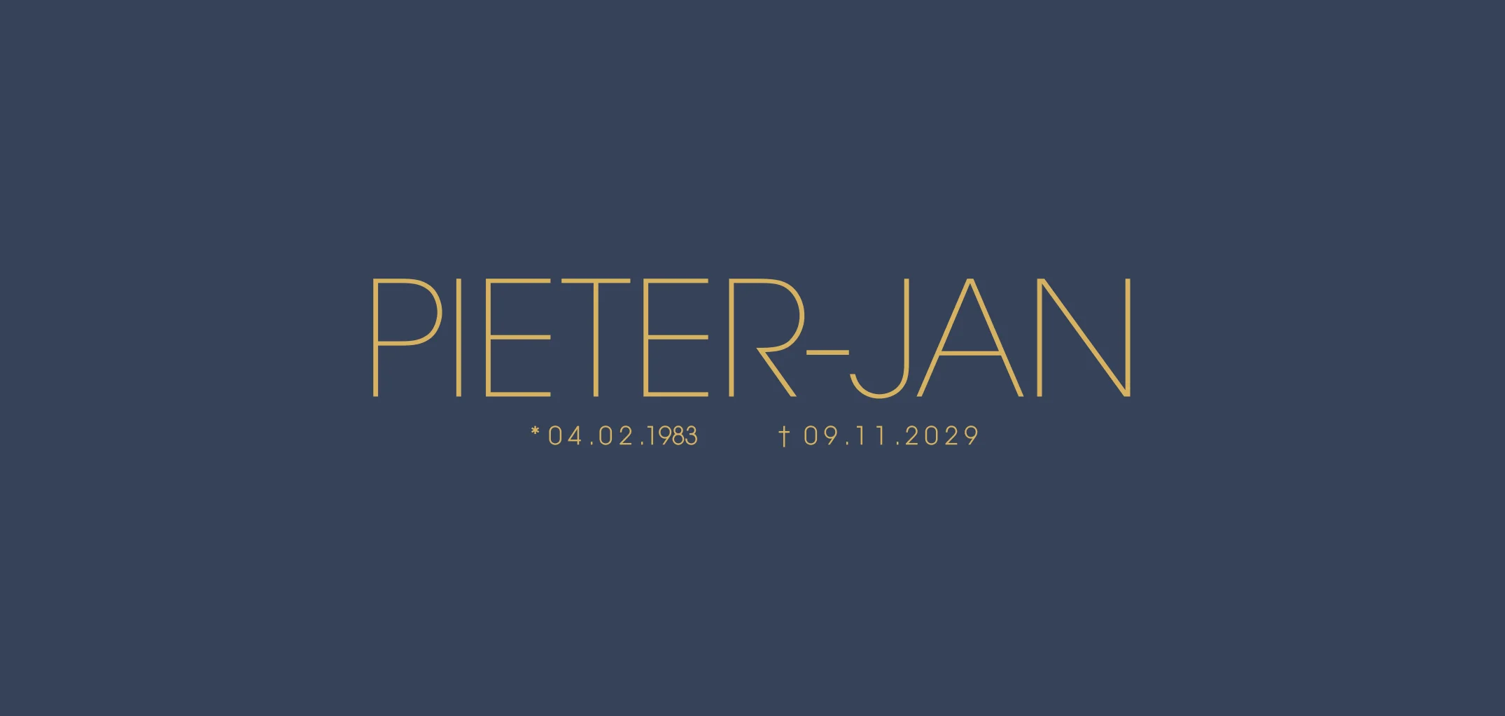 Rouwkaart voor een man. Modern en strak met tekst en een donker blauwe achtergrond. (981)