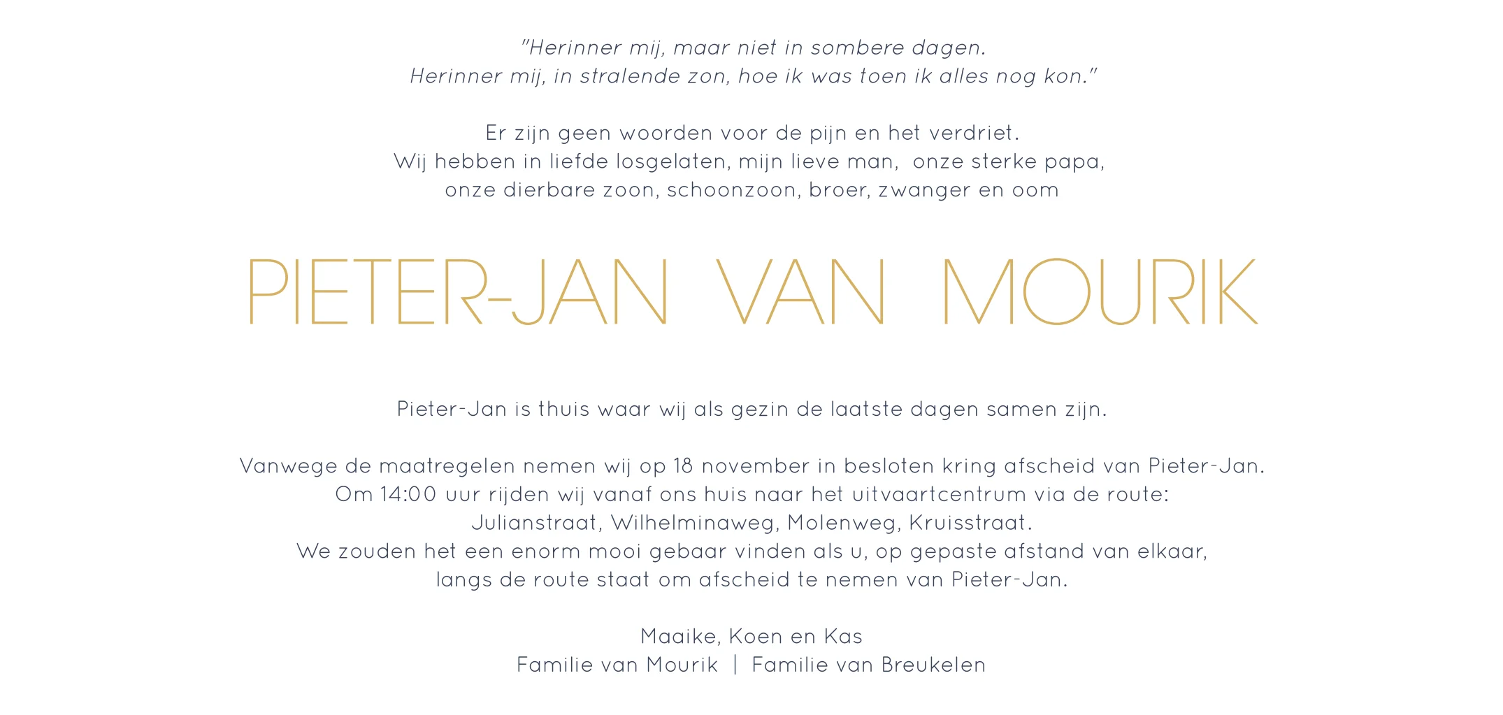 Moderne rouwkaart met goudkleur op donkerblauwe achtergrond