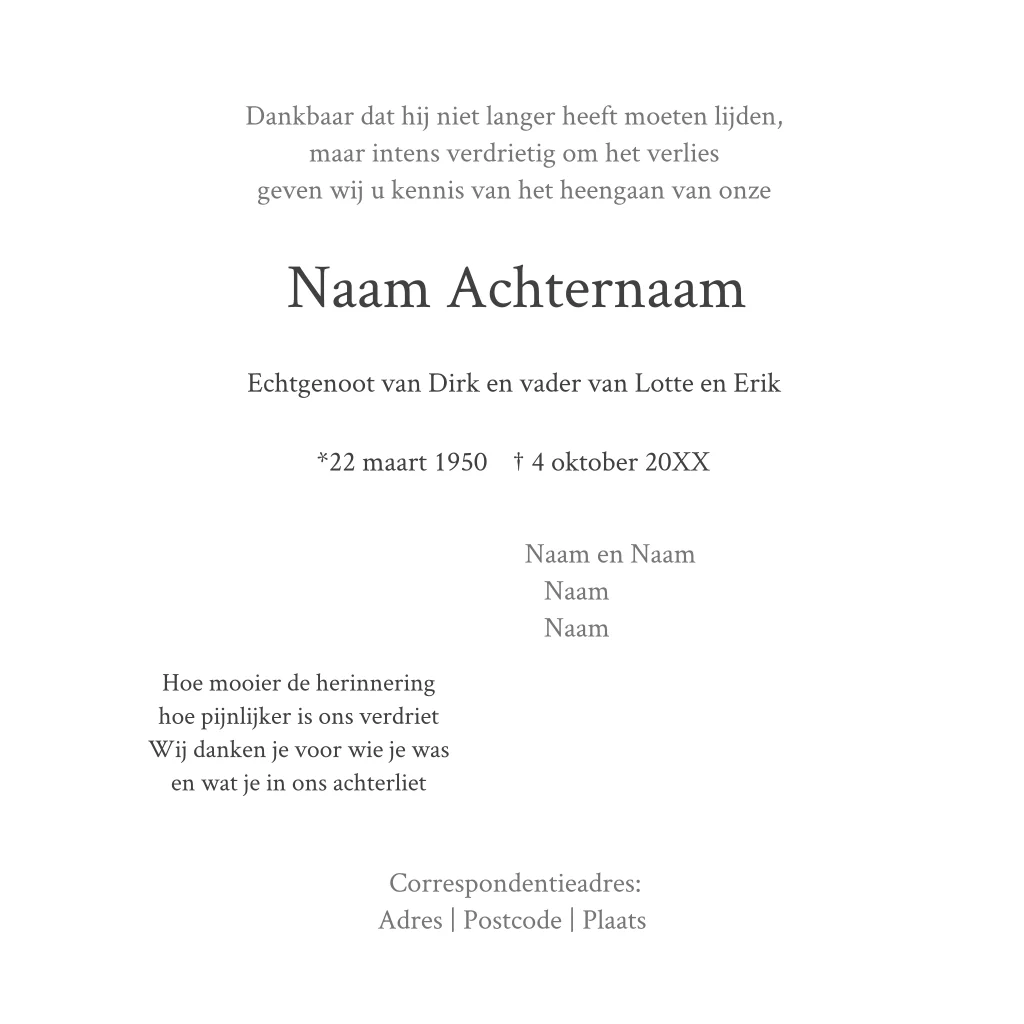 Rouwkaart met zwart wit foto strand. met trap uit de duinen. Alle teksten en kleuren zijn naar keuze aan te passen. (628)