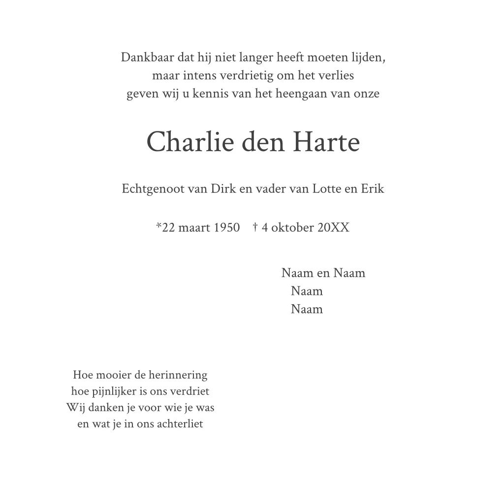 Moderne rouwkaart met zwart wit foto stapelstenen
