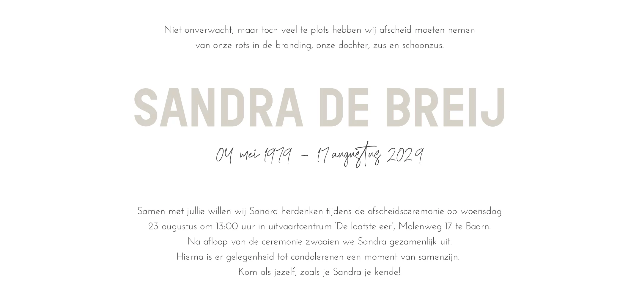Pas deze panorama formaat 21x10 cm rouwkaart zelf aan in de editor: vervang de voorbeeldfoto voor een eigen foto en pas eventueel de kleur daarop aan. Bestel een proefdruk of download gratis een proefdruk pdf en druk zelf af op 100%. (979)