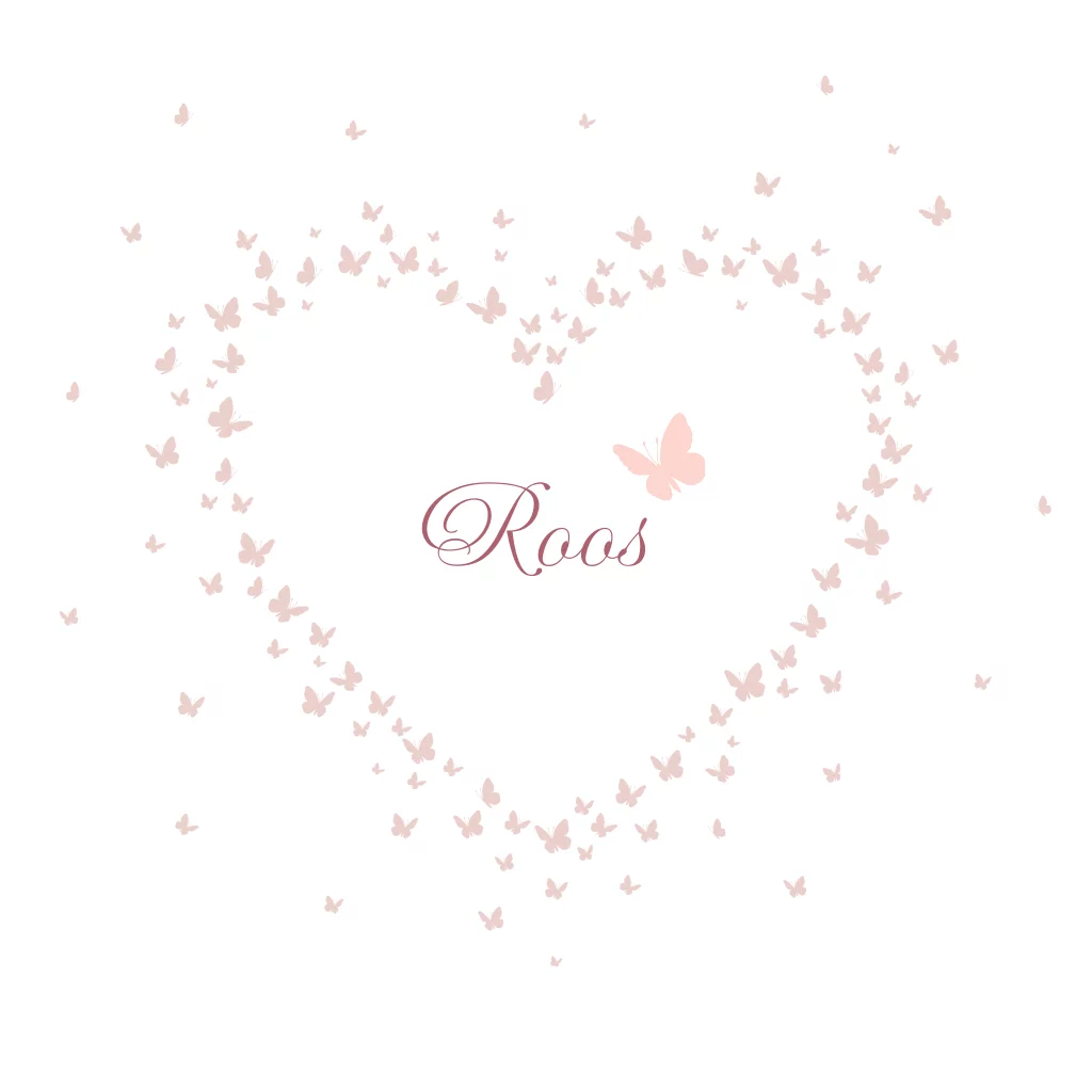Een lief rouwkaartje voor een dochtertje met het silhouet van kleine vlindertjes in de vorm van een hartje waarin je de naam van jullie dochtertje kunt schrijven. Aan de binnenzijde van de kaart is er ruimte voor jullie teksten en eventueel een foto van jullie kindje. (555555)