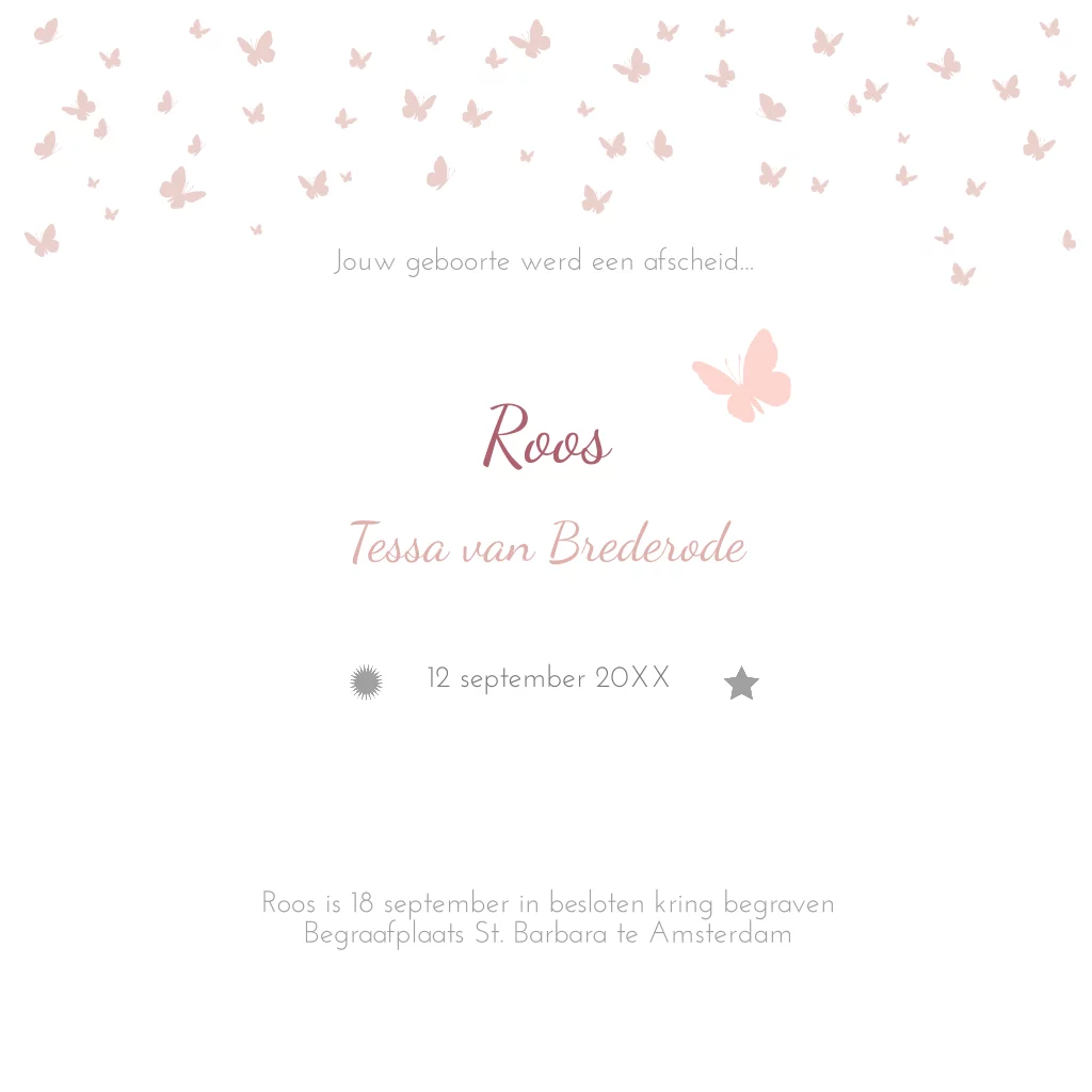 Een mooi rouwkaartje voor een vlinderkindje met hartvorm vlinders