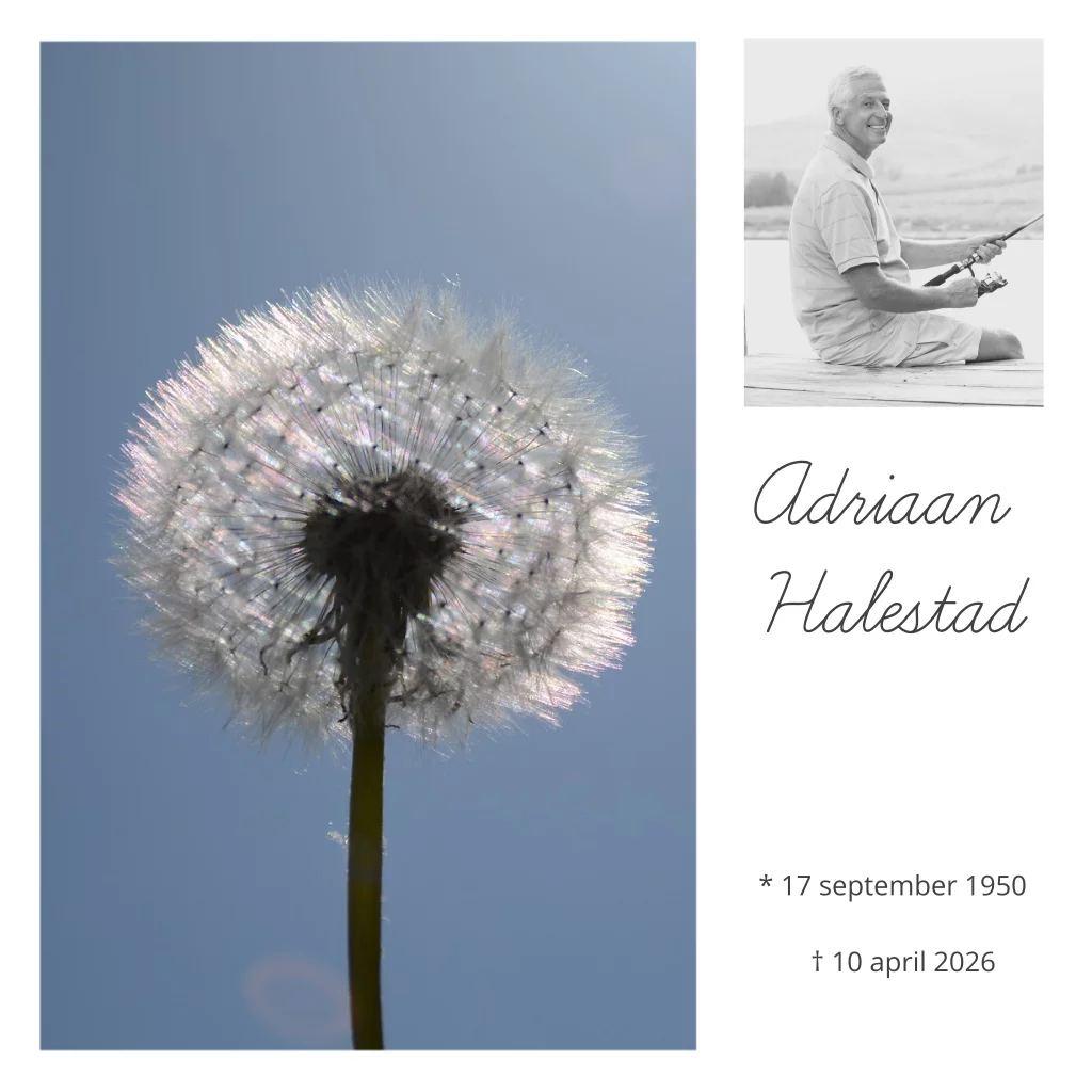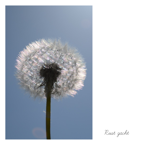 Mooie moderne rouwkaart met eigen foto en paardebloem. Met witte kader randen. Alle teksten en kleuren zijn naar keuze aan te passen. (10)