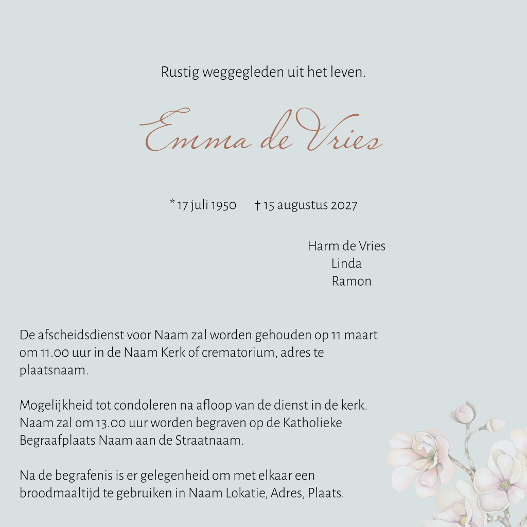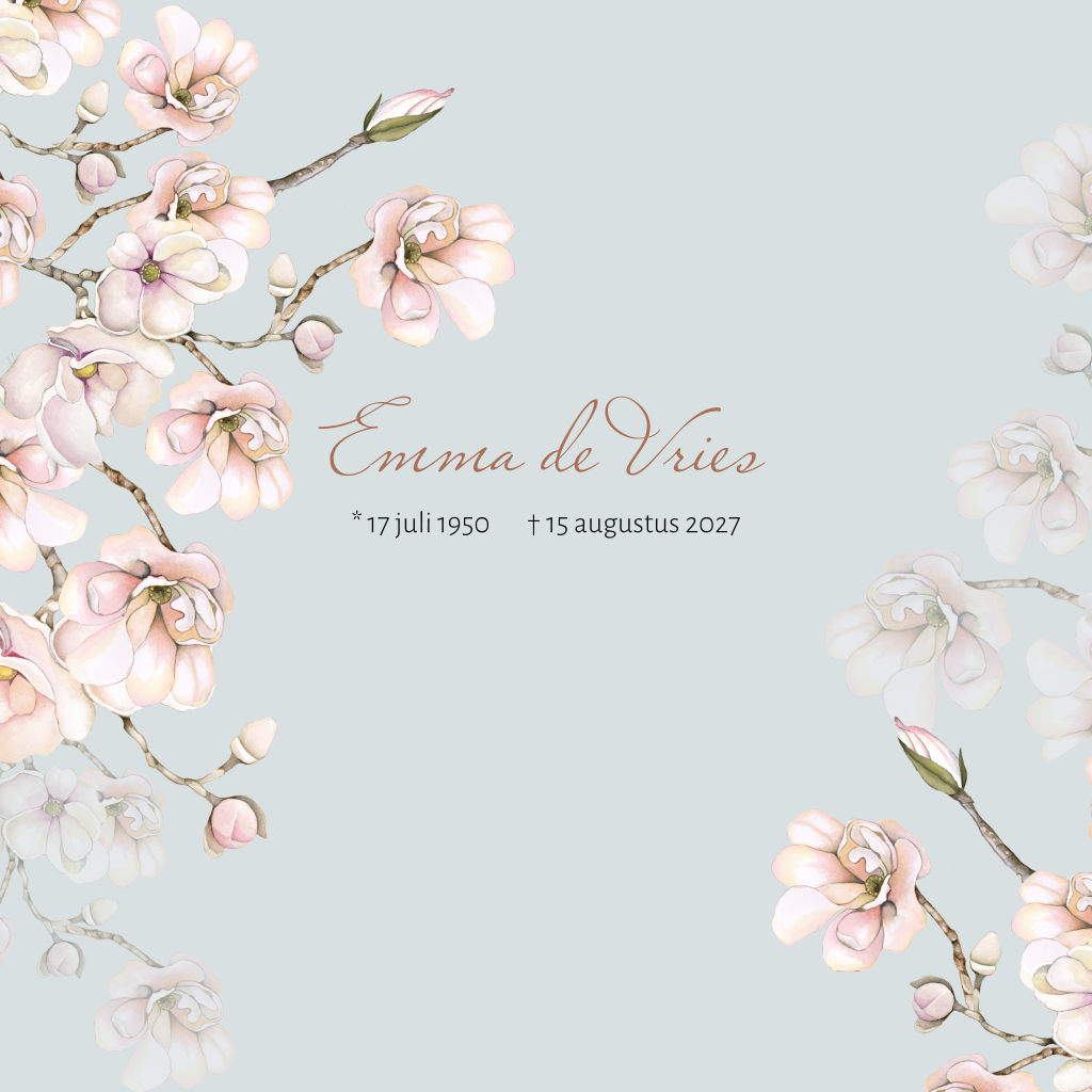 Rouwkaart met mooie bloesem gemaakt in aquarel. Achtergrondkleur is aanpasbaar. (1010)