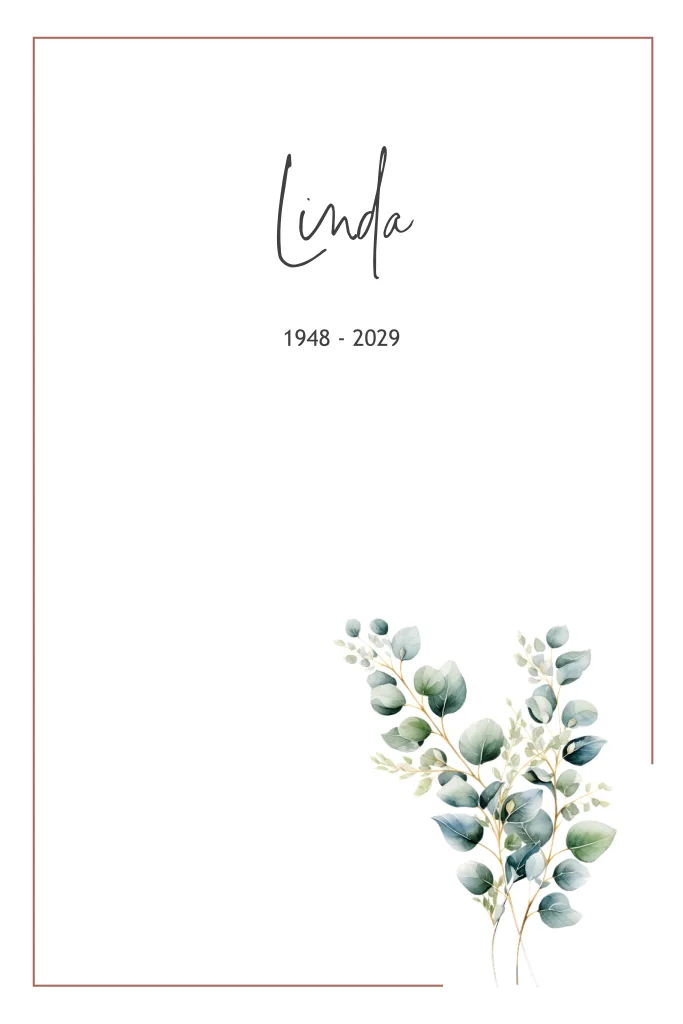 Klassieke rouwkaart met rouwrandje in kleur terra en mooie watercolor eucalyptus bloemen.