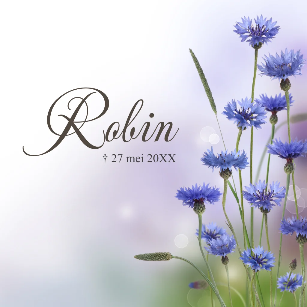 Mooie rouwkaart met paarse korenbloemen. (792)