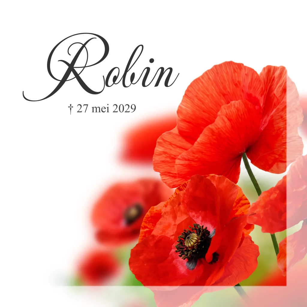 Rouwkaart voor een overleden dierbare met een foto van bloemen. Rode klaprozen. (800)