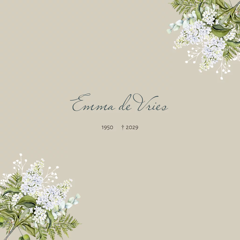 Rouwkaart met mooie seringen en blad. Achtergrond is aanpasbaar. (99999)