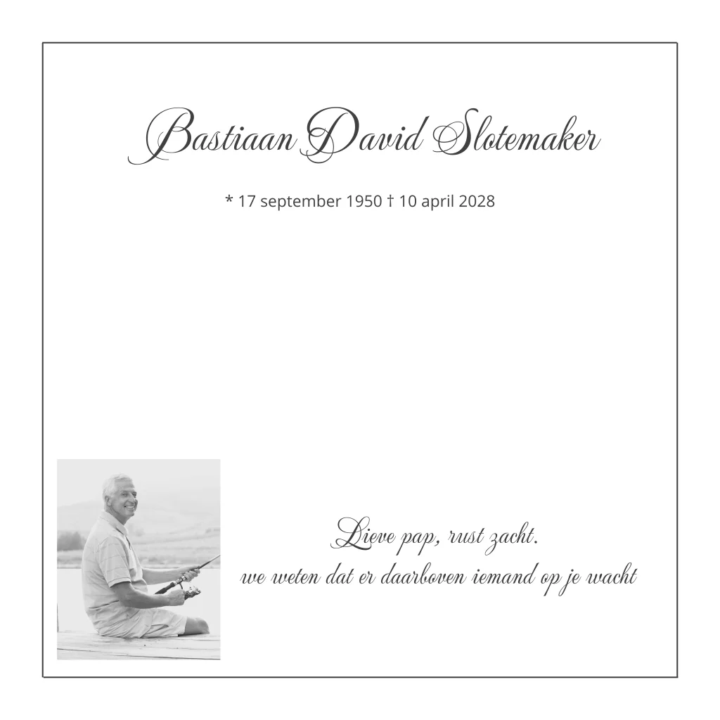 Rouwkaart met foto en grijze rouwrand. Het is mogelijk om een eigen foto toe te voegen. (68)