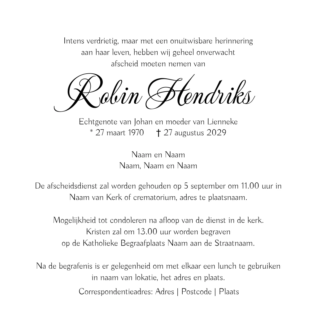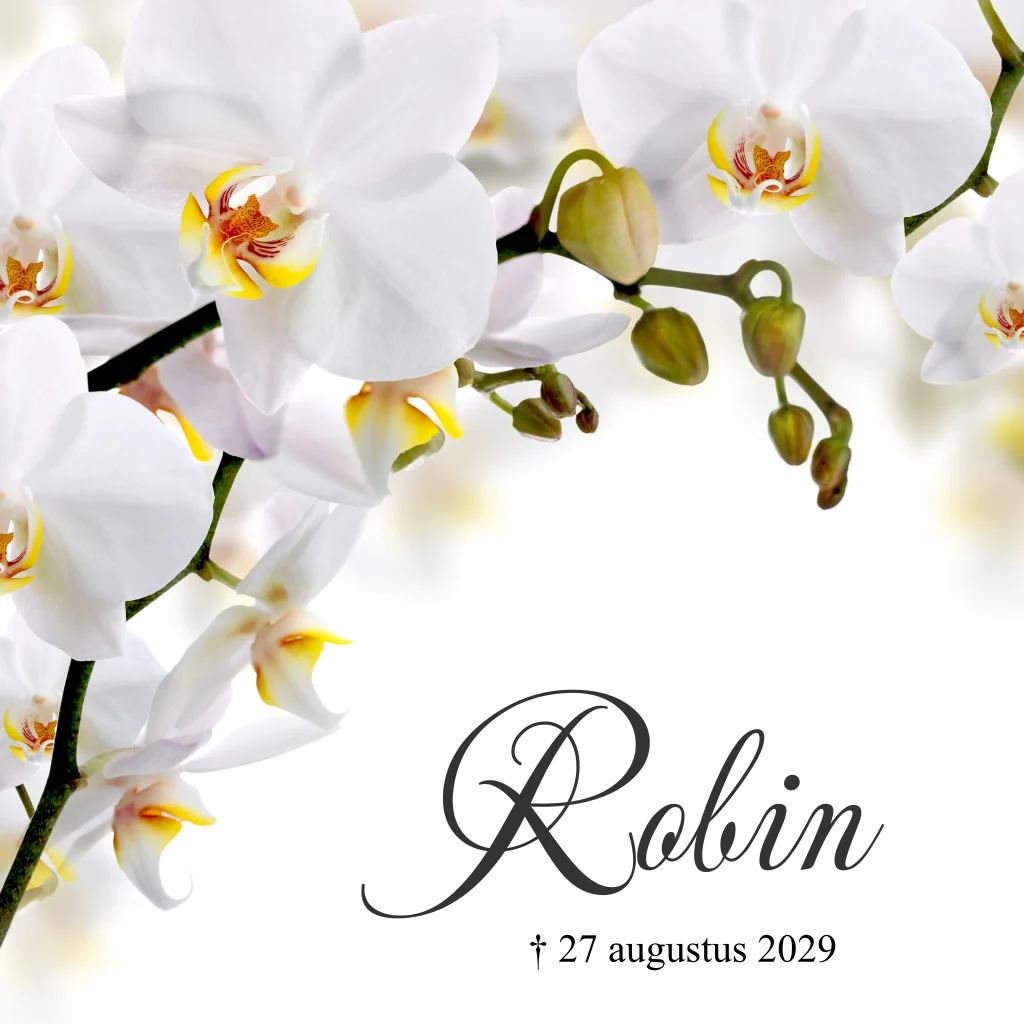 Mooie stijlvolle rouwkaart met witte orchidee. (799)