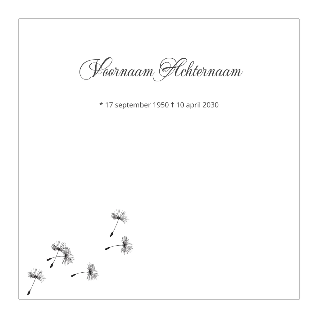 Rouwkaart klassiek wit met paardebloem en grijze rouwrand