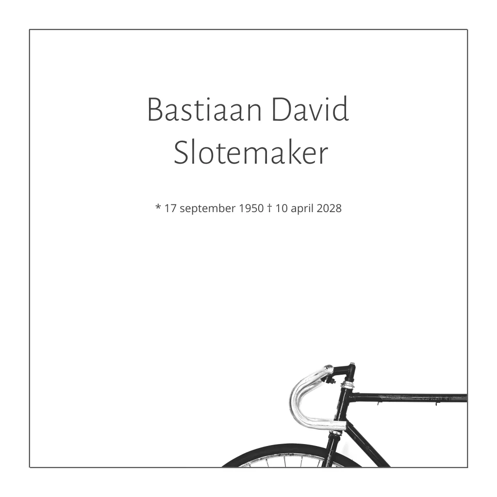 Mooie stijlvolle rouwkaart met racefiets /fiets en een grijze rouwrand. Het is mogelijk om een eigen foto toe te voegen. (69)