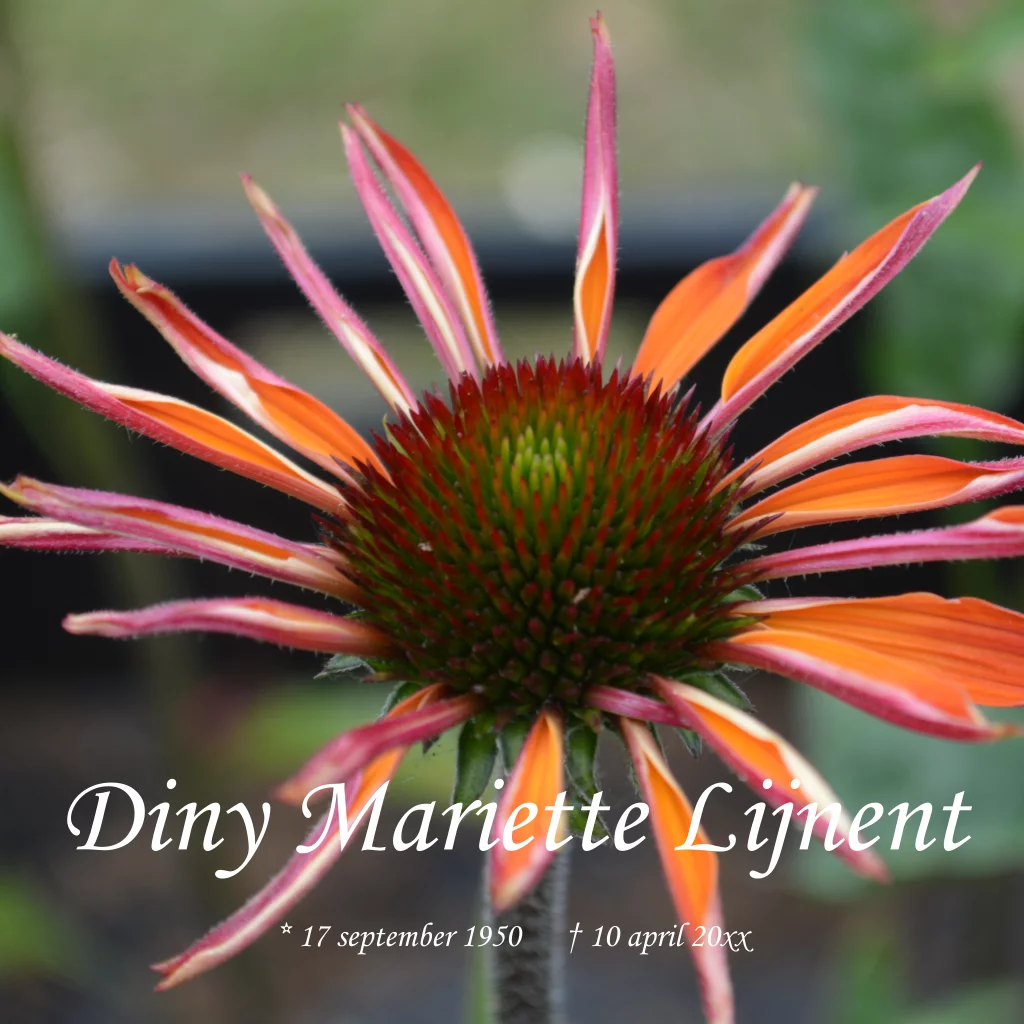 Overlijdenskaart rouwkaart met oranje clematis bloem