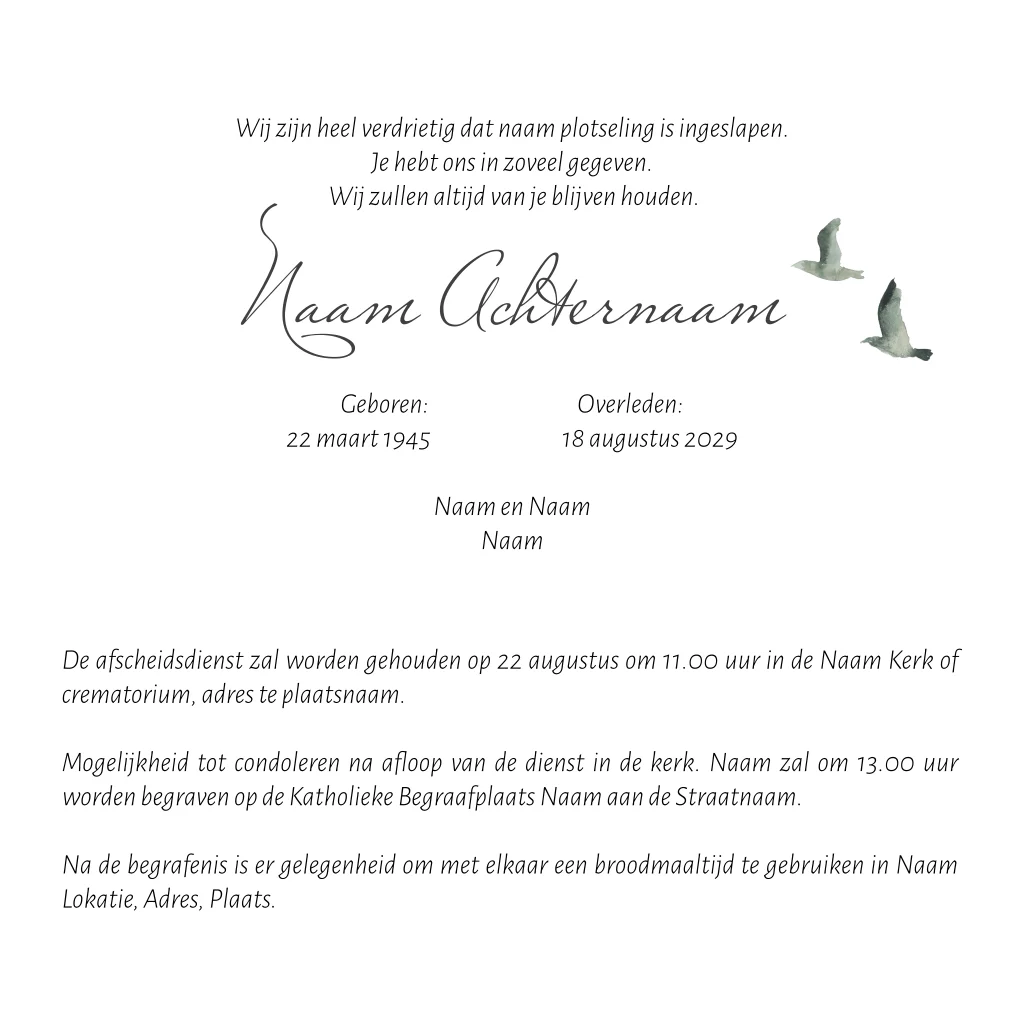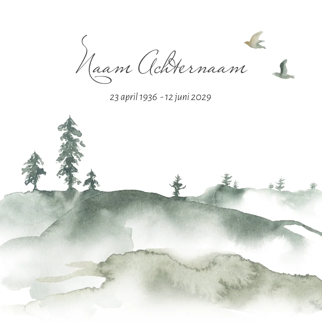 Prachtige rouwkaart met landschap en vogels