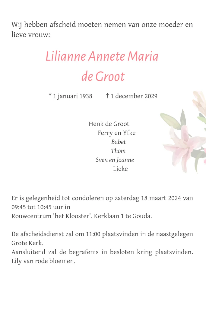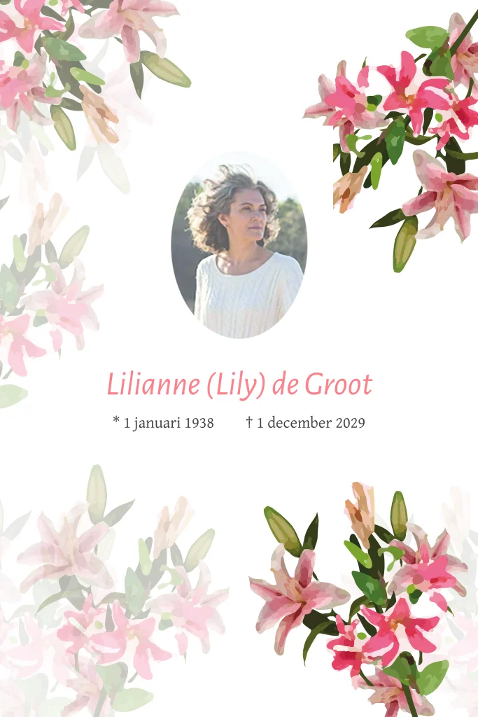 Een fleurige rouwkaart, om het leven van een fleurig persoon mee te vieren.