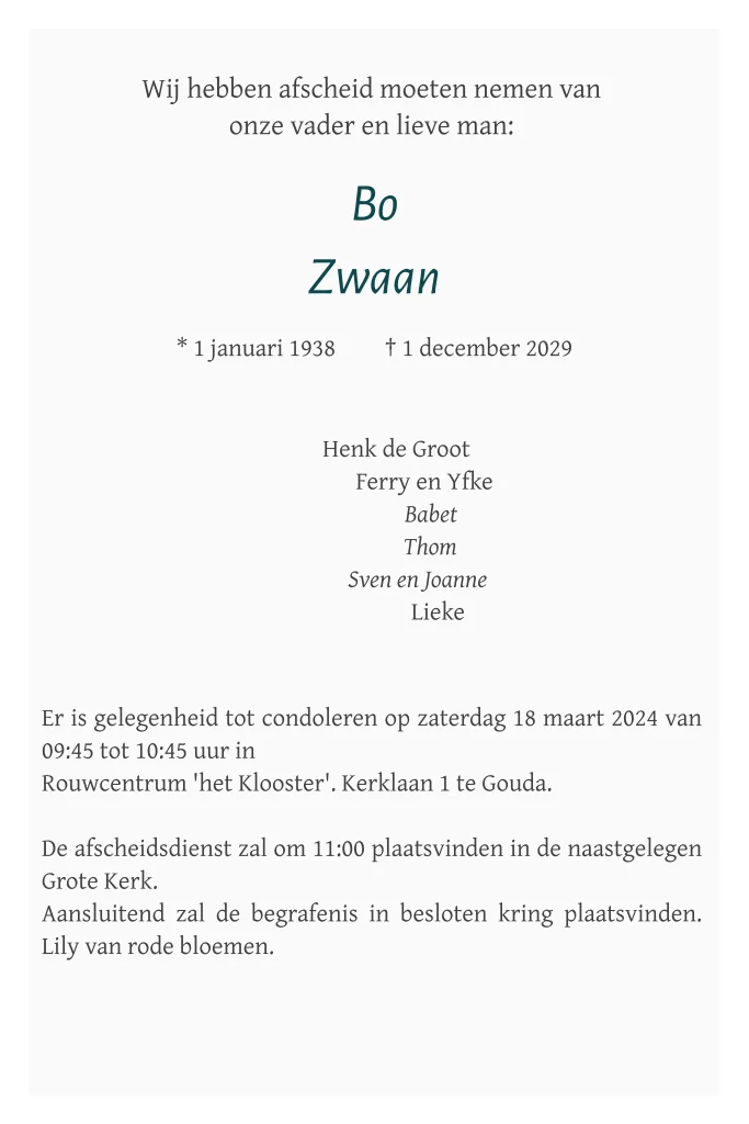 Rouwkaart met een sierlijk getekende zwaan. (1119)