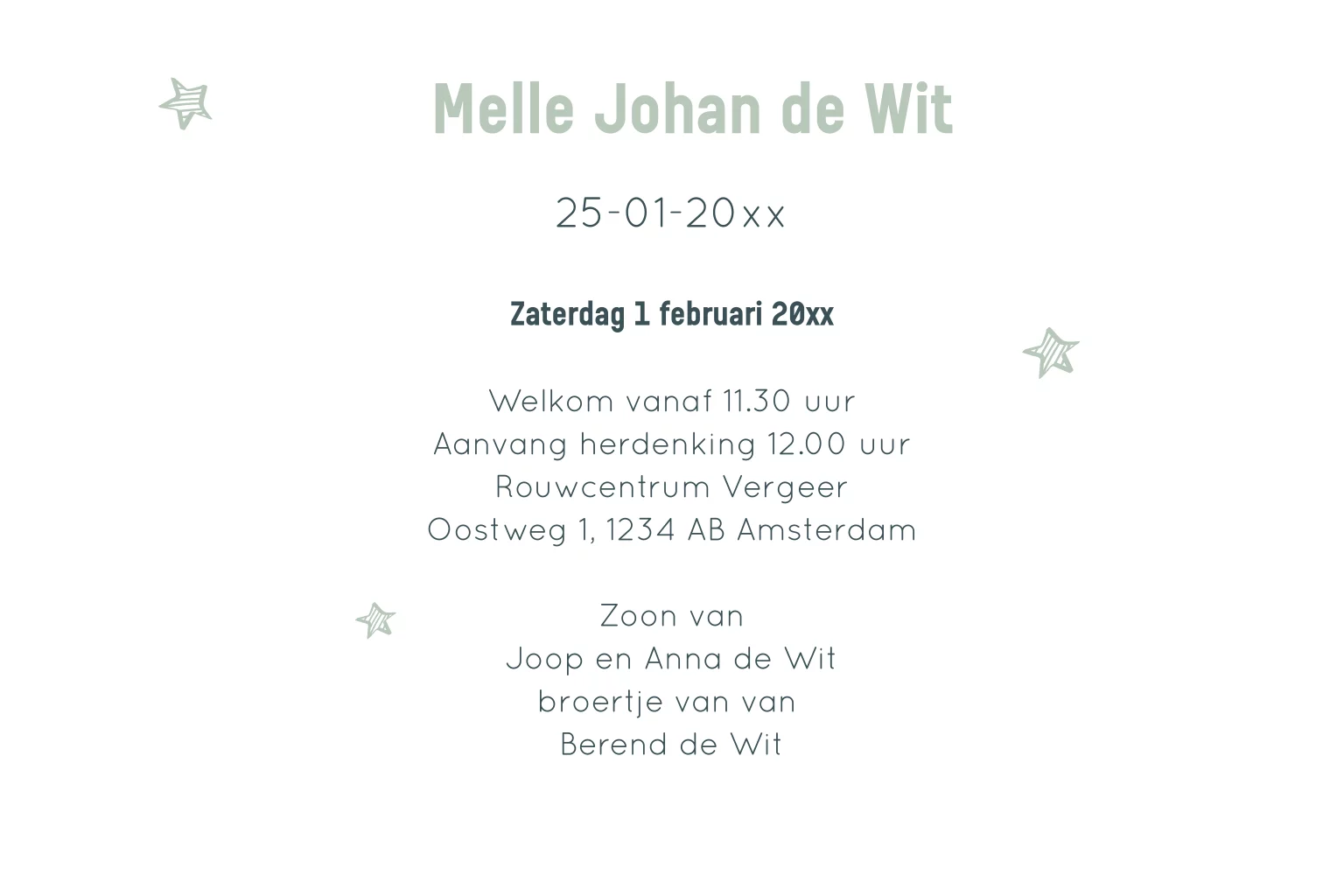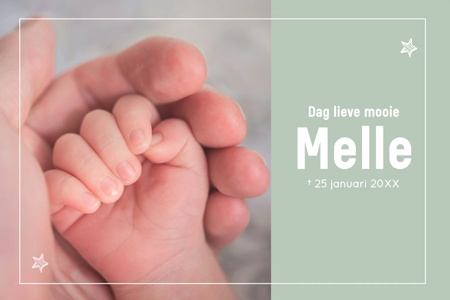 Modern rouwkaartje voor een baby/kind met ruimte voor het plaatsen van een eigen foto. Mint groen met rouwkader. (555555)