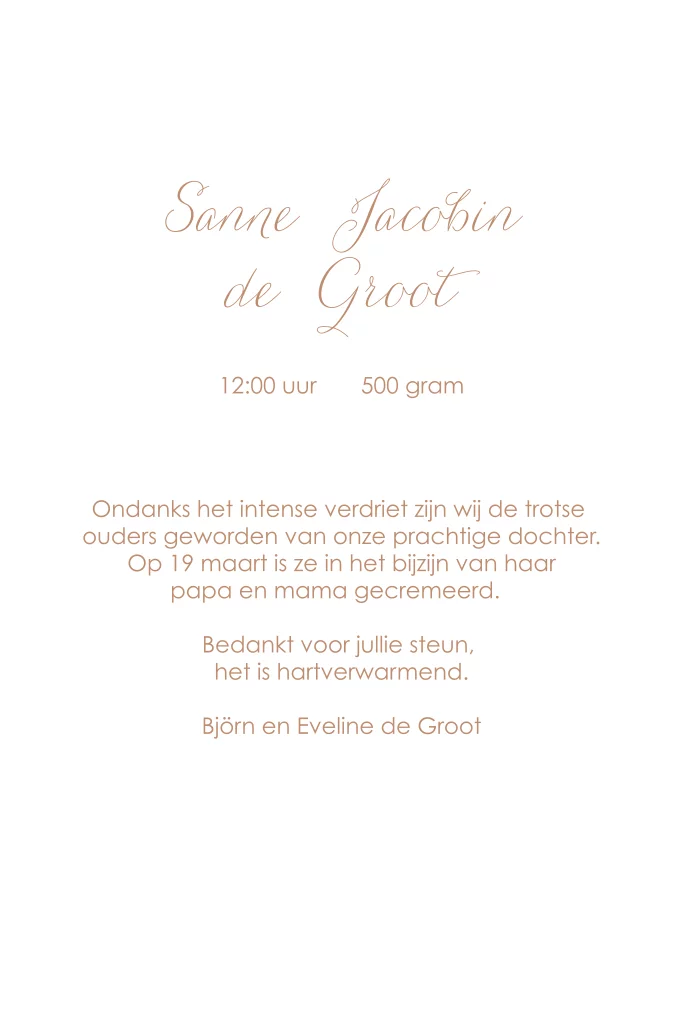 Rouwkaart voor een baby kindje meisje met hartjes en vlinder