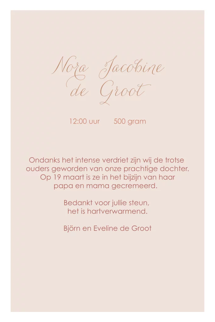 Rouwkaart voor een baby meisje met een kindje in een wiegje