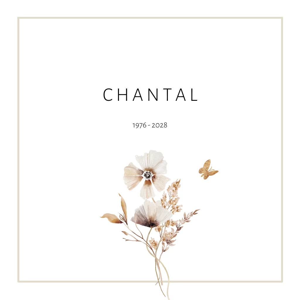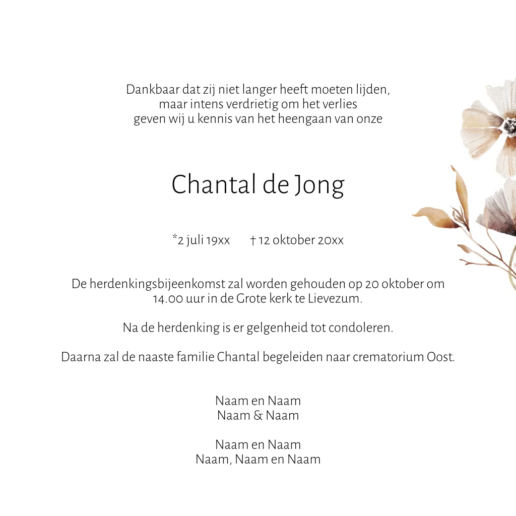 Rouwkaart voor een vrouw met gedroogde bloemen in rustige aardetinten en klein vlindertje. (965)