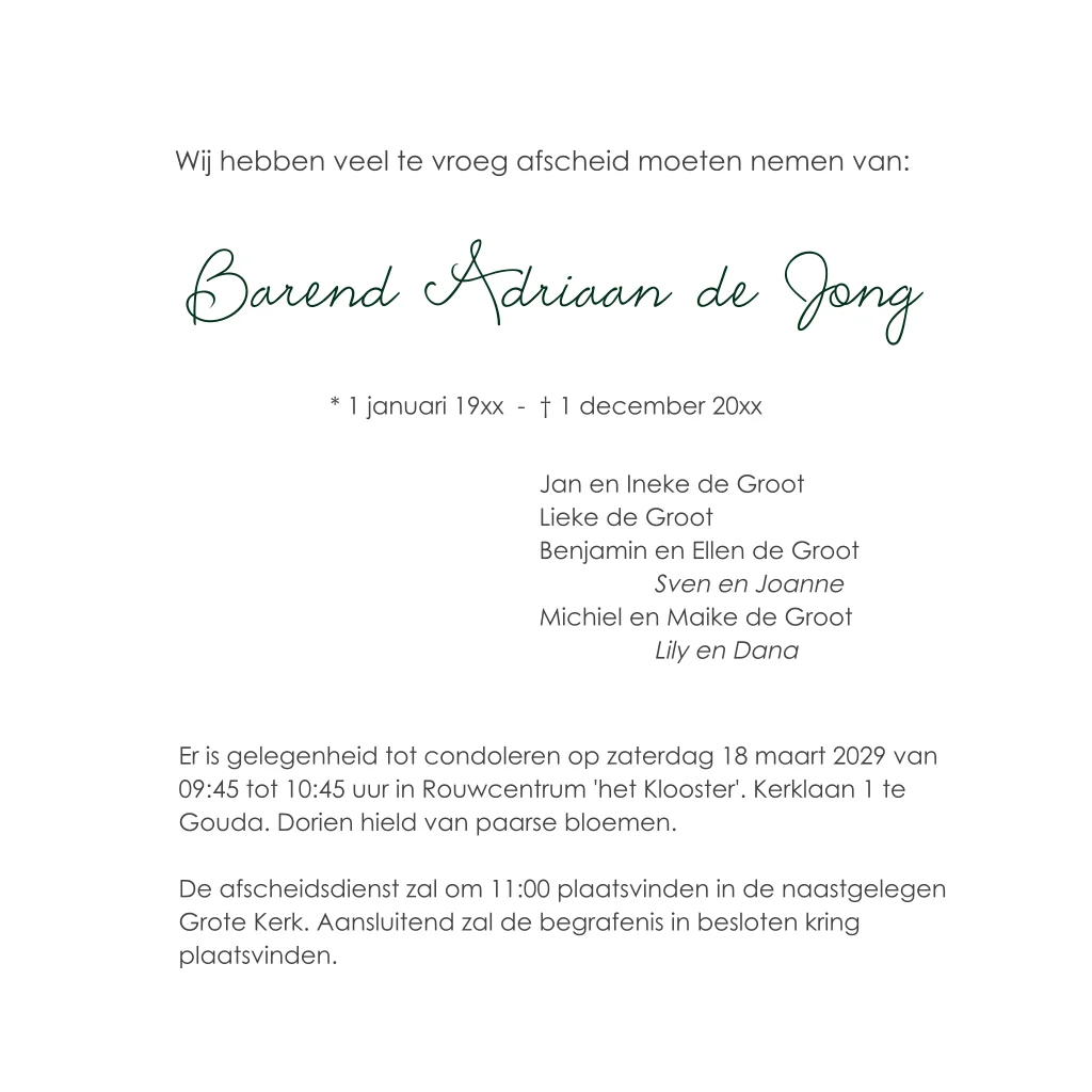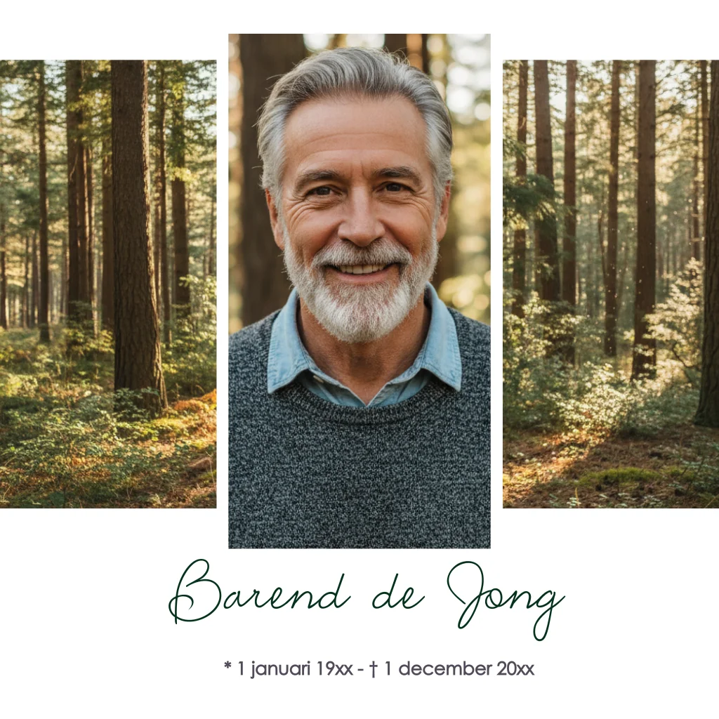 Rouwkaart voor een man met afbeelding bomen en bos en eigen foto