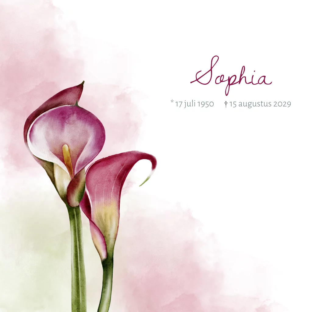 Rouwkaart met getekende roze calla lelie bloem. (1188)