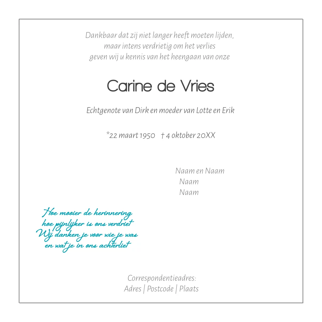 Alle teksten en kleuren zijn naar keuze aan te passen en de rouwrand is te verwijderen. (9999)