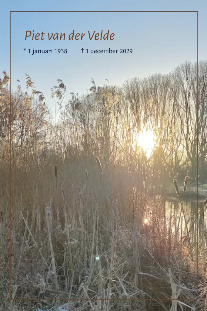 Rouwkaart met een winterse foto met riet, een beetje sneeuw en een zonsopgang. Kromme rijn Utrecht. (1133)