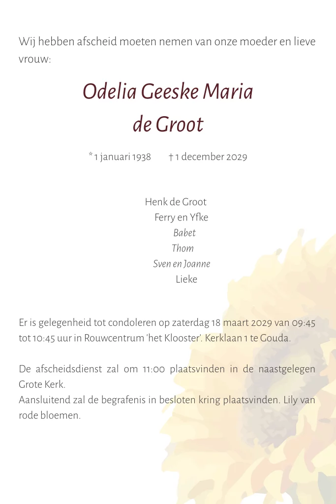 Rouwkaart met zonnebloemen en ruimte voor een foto