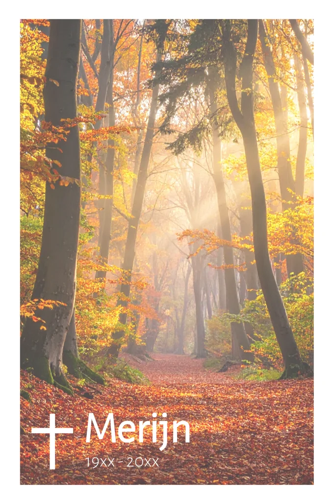 Rouwkaart met herfst thema. Een bos met bomen in prachtige herfstkleuren.