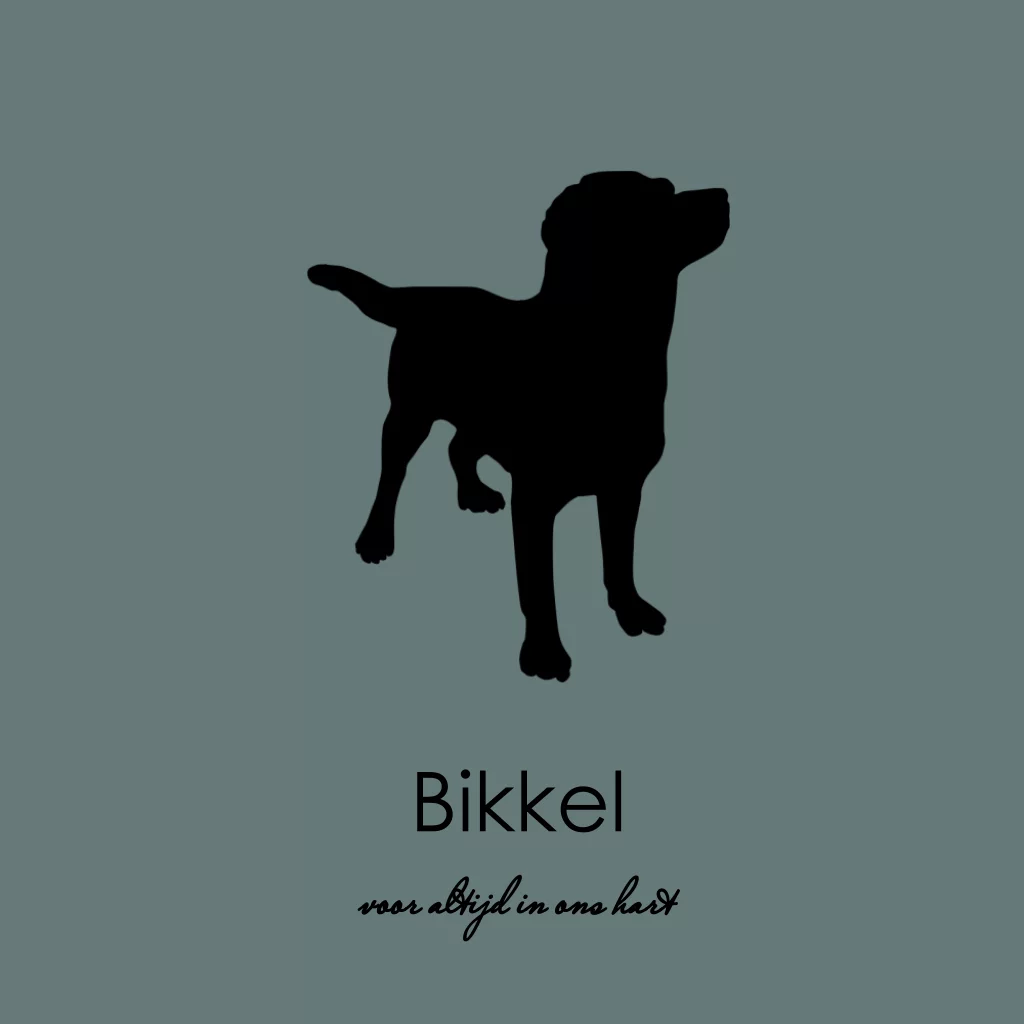 Rouwkaart huisdier hond met tekening silhouet. Vervang de foto en plaats je eigen tekst. De kleuren zijn naar wens aan te passen.