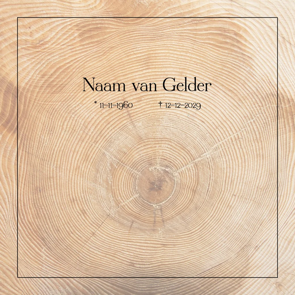Rouwkaart met jaarringen van een boom ringen