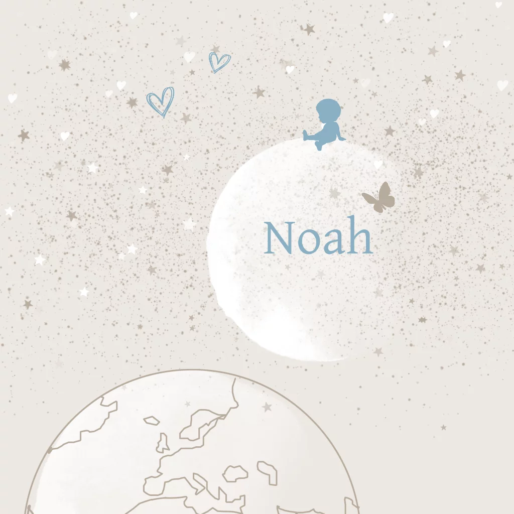 Silhouet baby rouwkaartje met maan wereldbol en sterretjes