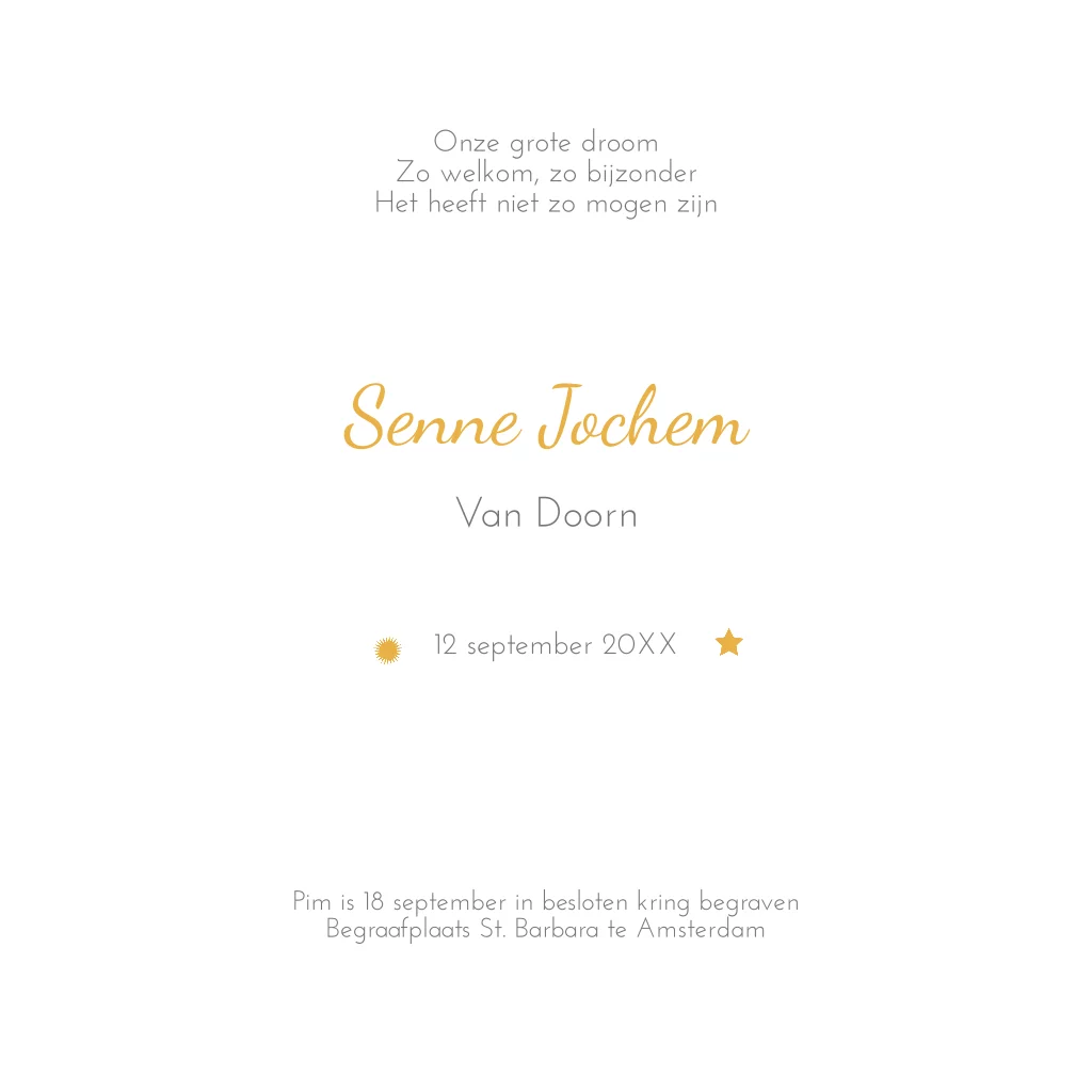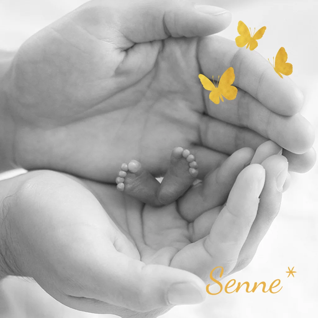 Rouwkaartje baby jongen meisje foto voetjes in handen vlindertjes