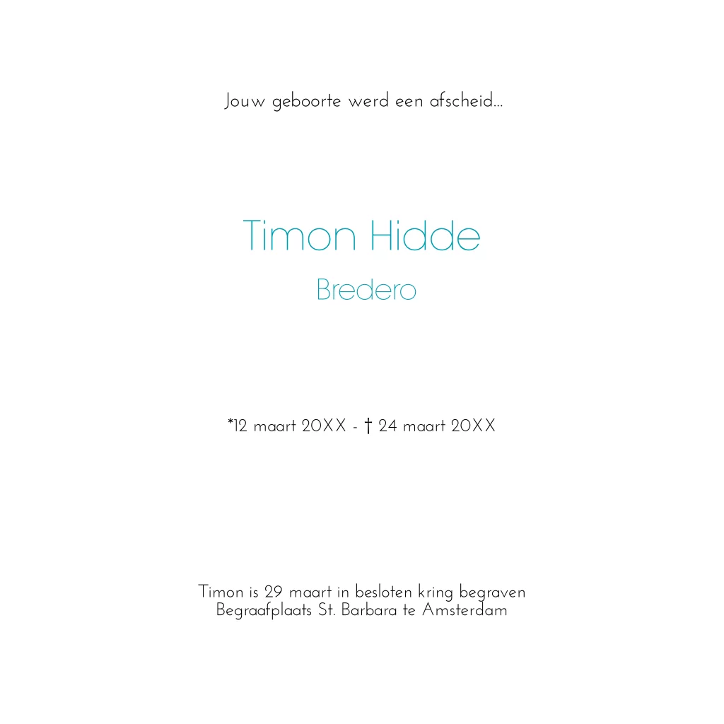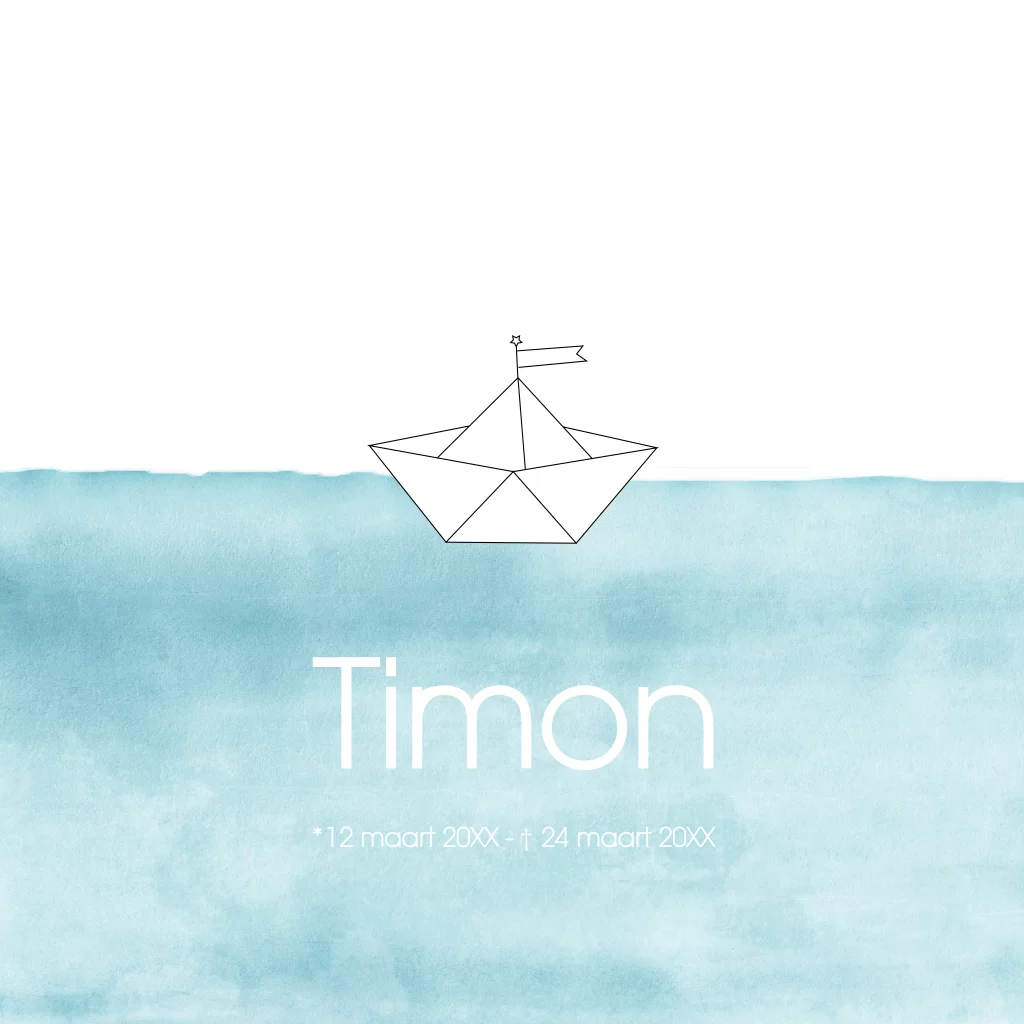 Op dit mooie rouwkaartje voor een jongetje staat een illustratie van een gevouwen bootje op waterverf ondergrond. Aan de binnenzijde is plaats voor een foto van jullie kleintje. (555555)