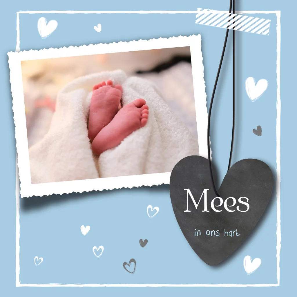 Rouwkaart voor een doodgeboren baby jongetje met groot hart en ruimte voor een foto. (1074)