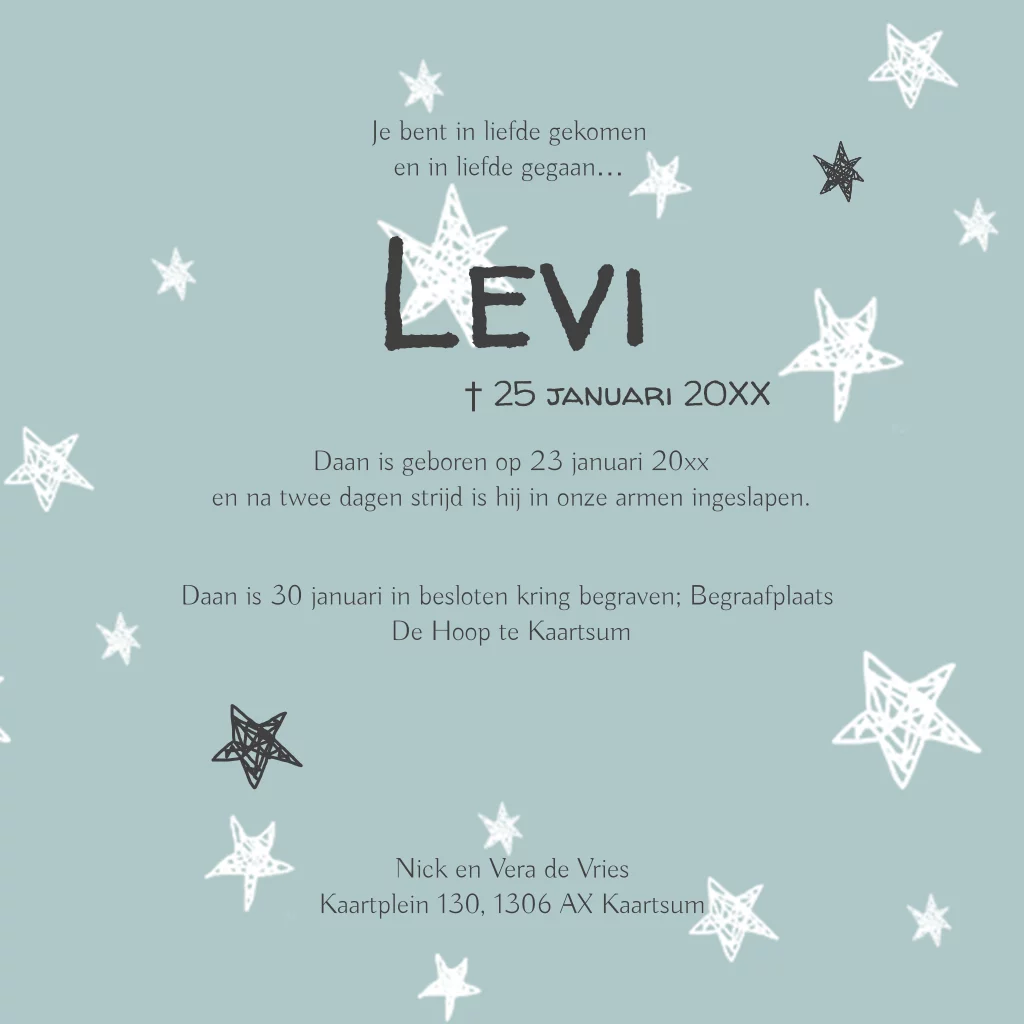 Rouwkaartje baby jongetje met sterretjes en mint groene achtergrond. (1055)