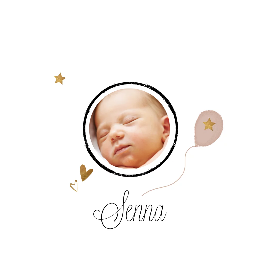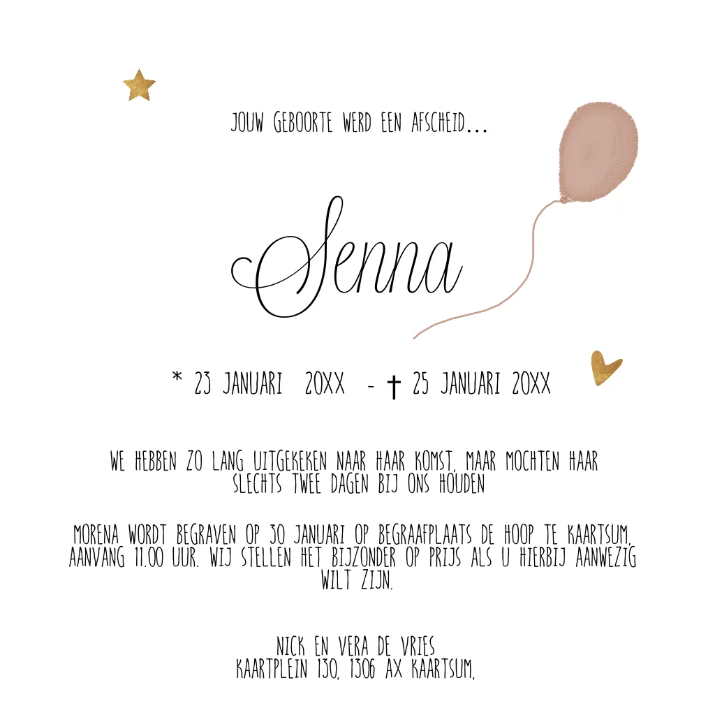 Rouwkaartje voor een baby meisje of jongetje met sterretjes, ballon en ruimte voor een eigen foto. (1052)