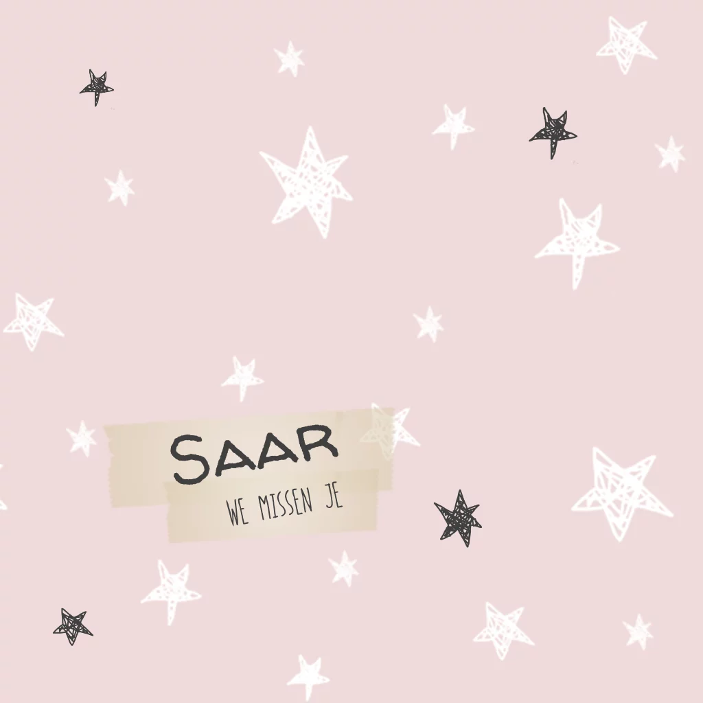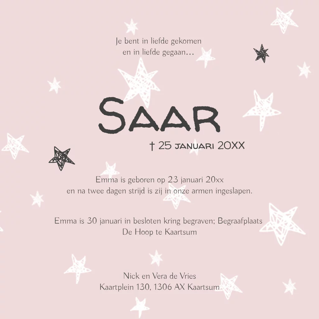 Rouwkaartje baby meisje met getekende sterretjes op een roze achtergrond. (1056)