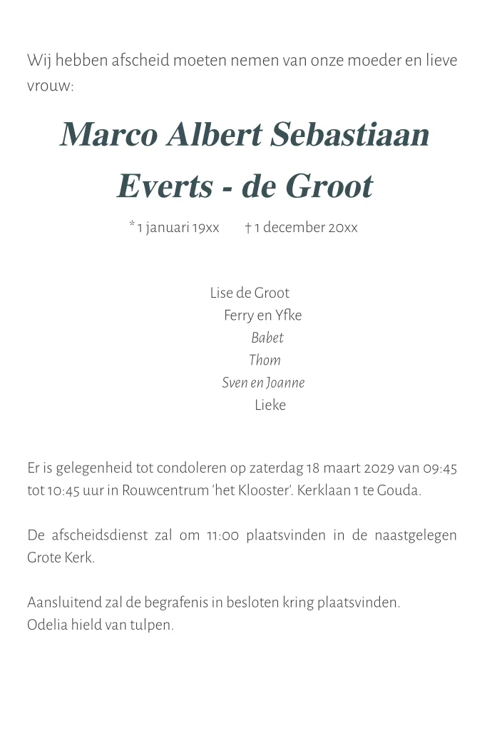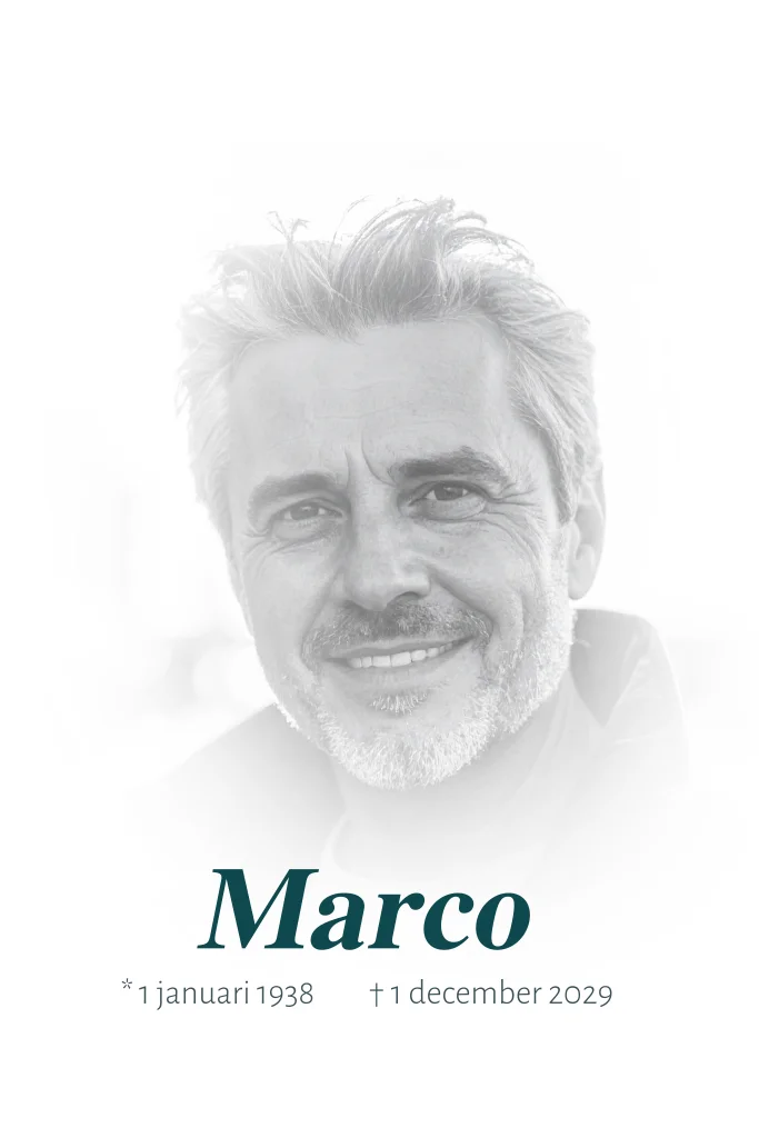 Klassieke rouwkaart voor een man met een vervaagde foto.