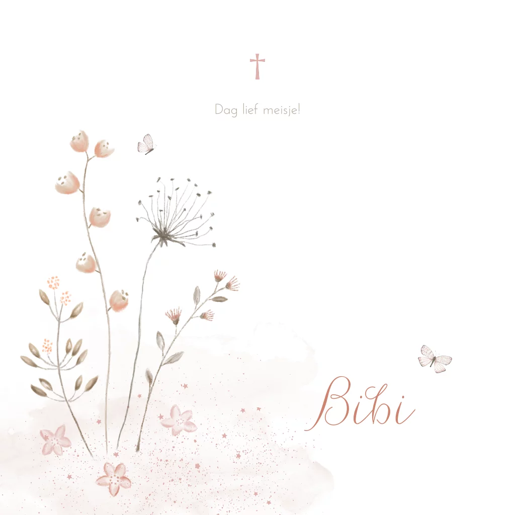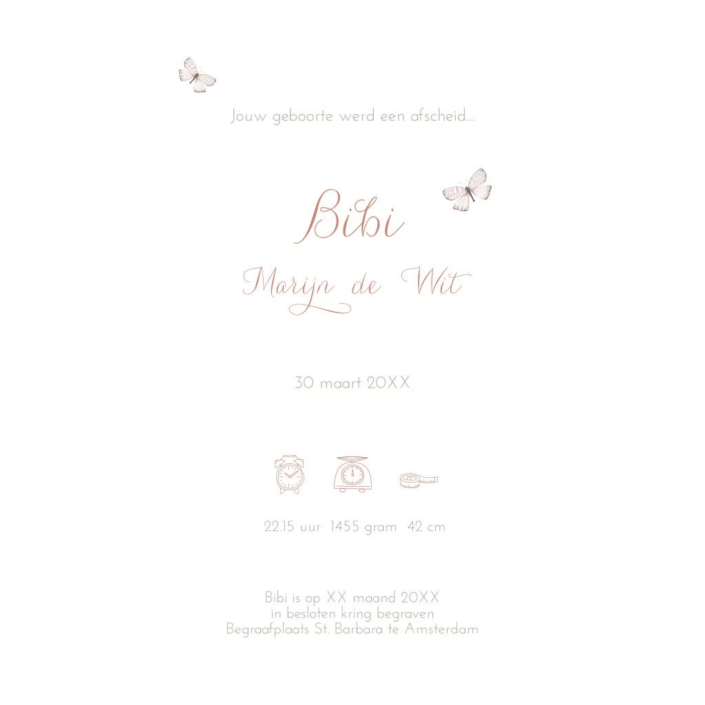 Dit mooie baby rouwkaartje met illustraties van waterverf veldbloemen kun je zelf eenvoudig bewerken door de kleuren en teksten aan te passen. (555555)