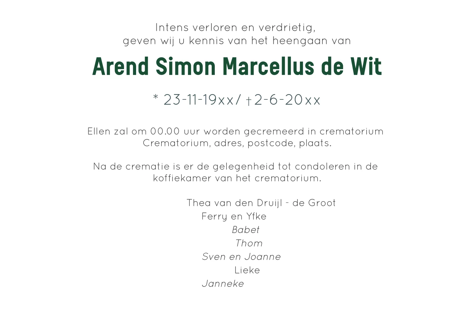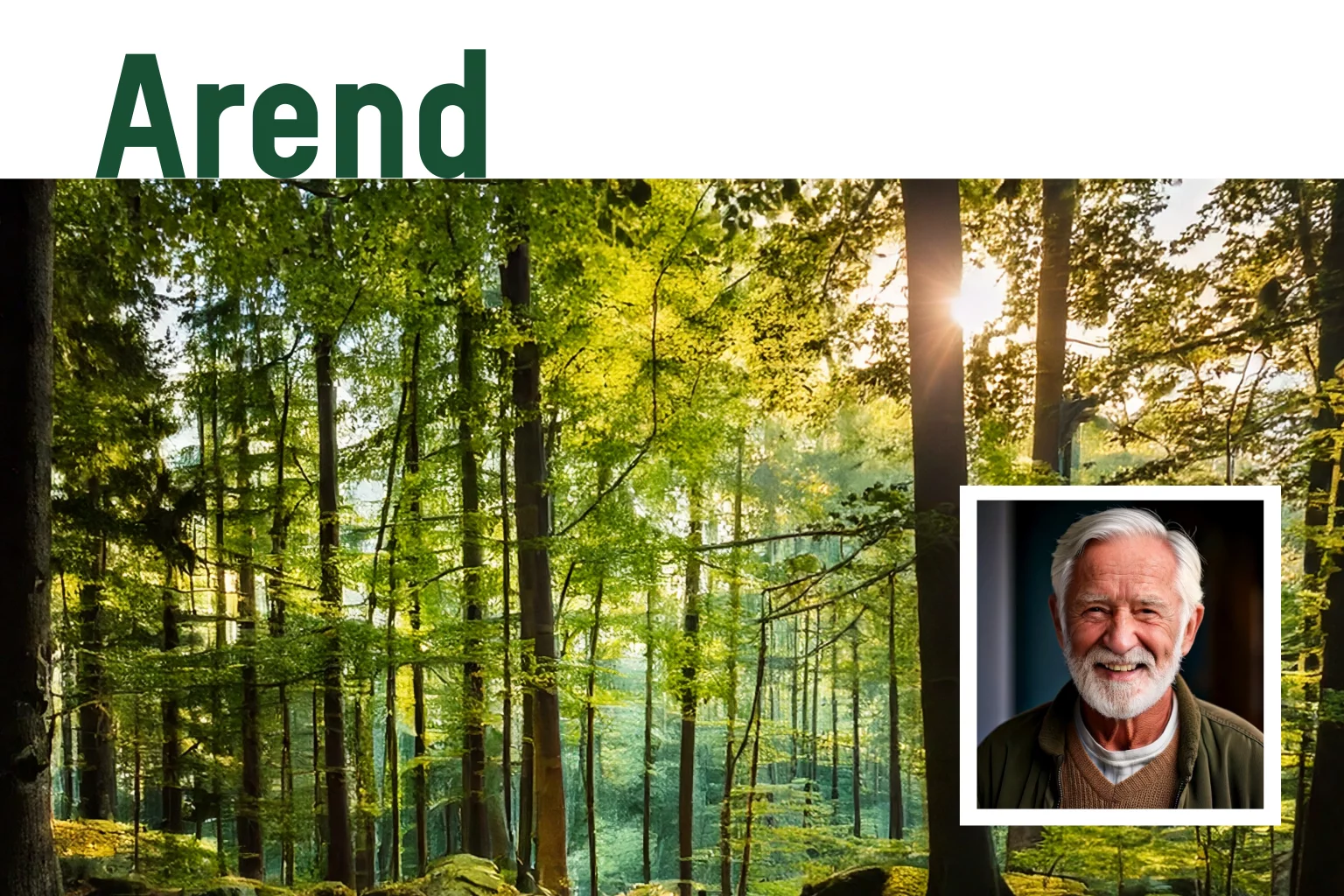 Rouwkaart voor een man met eigen foto en bos met bomen