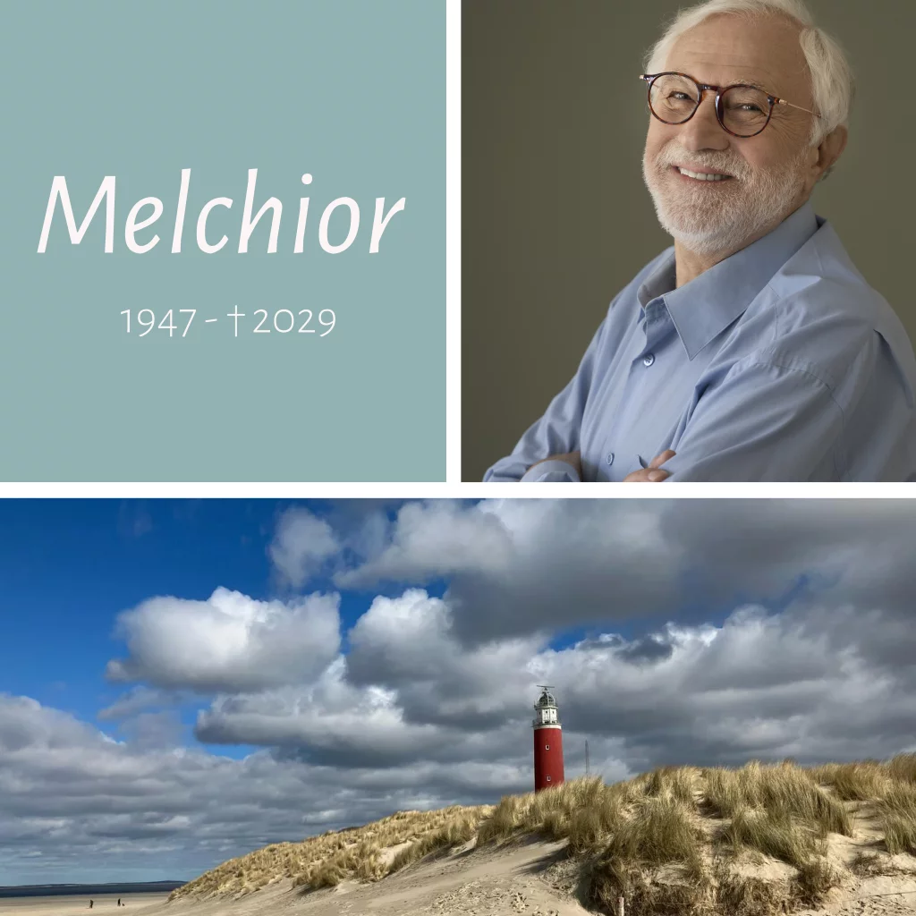 Rouwkaart man met foto vlakken voor hobby of sport of voor het plaatsen van een eigen foto bijvoorbeeld een vuurtoren. (1263)