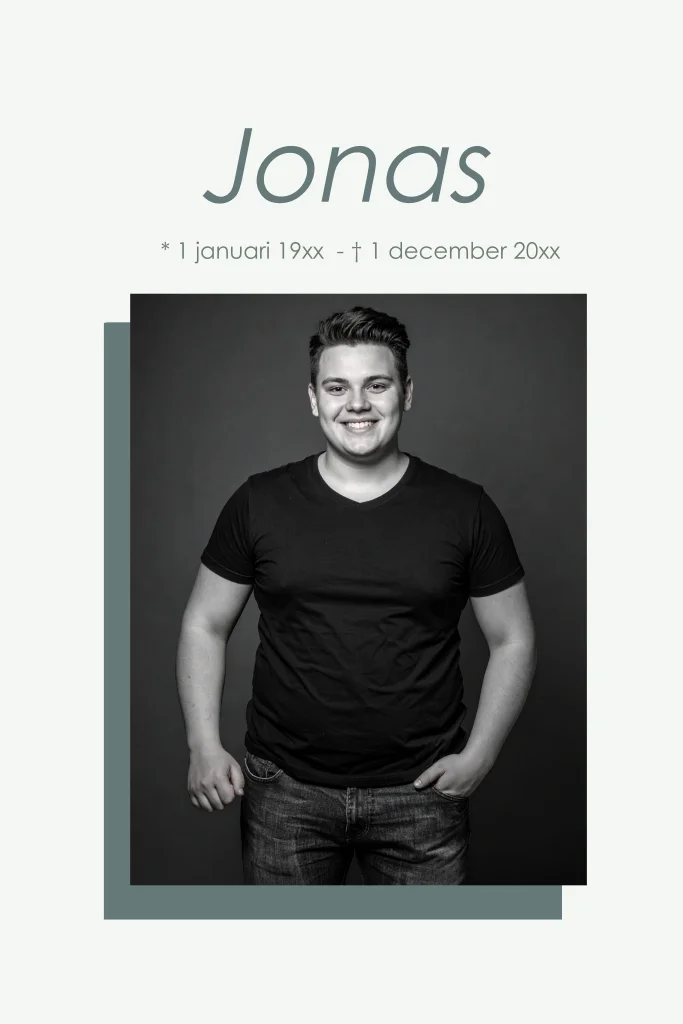 Rouwkaart voor een jonge man modern met kleurvlak en foto
